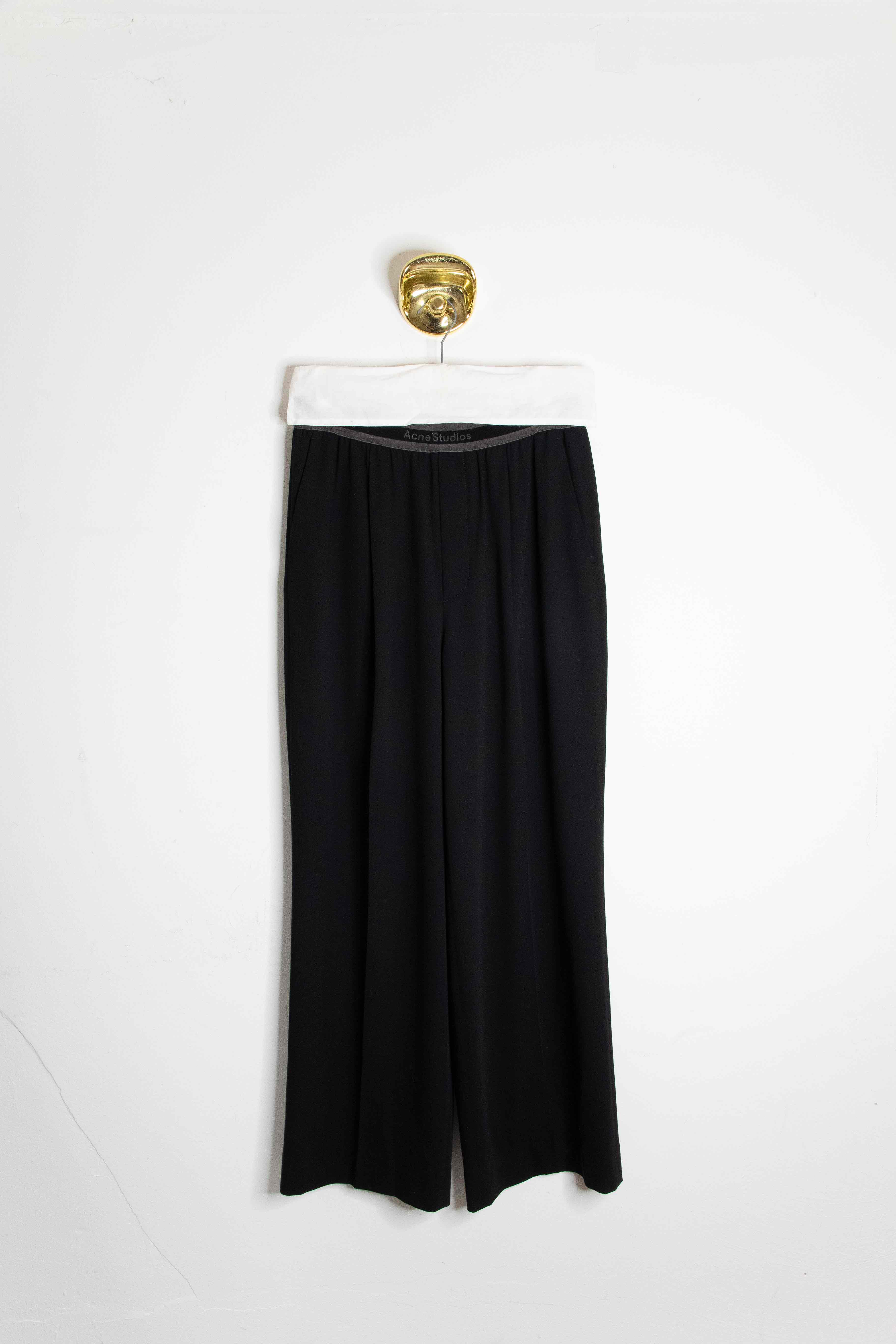 Black pants with elastic logo band. 65% viscose. 35% wool.