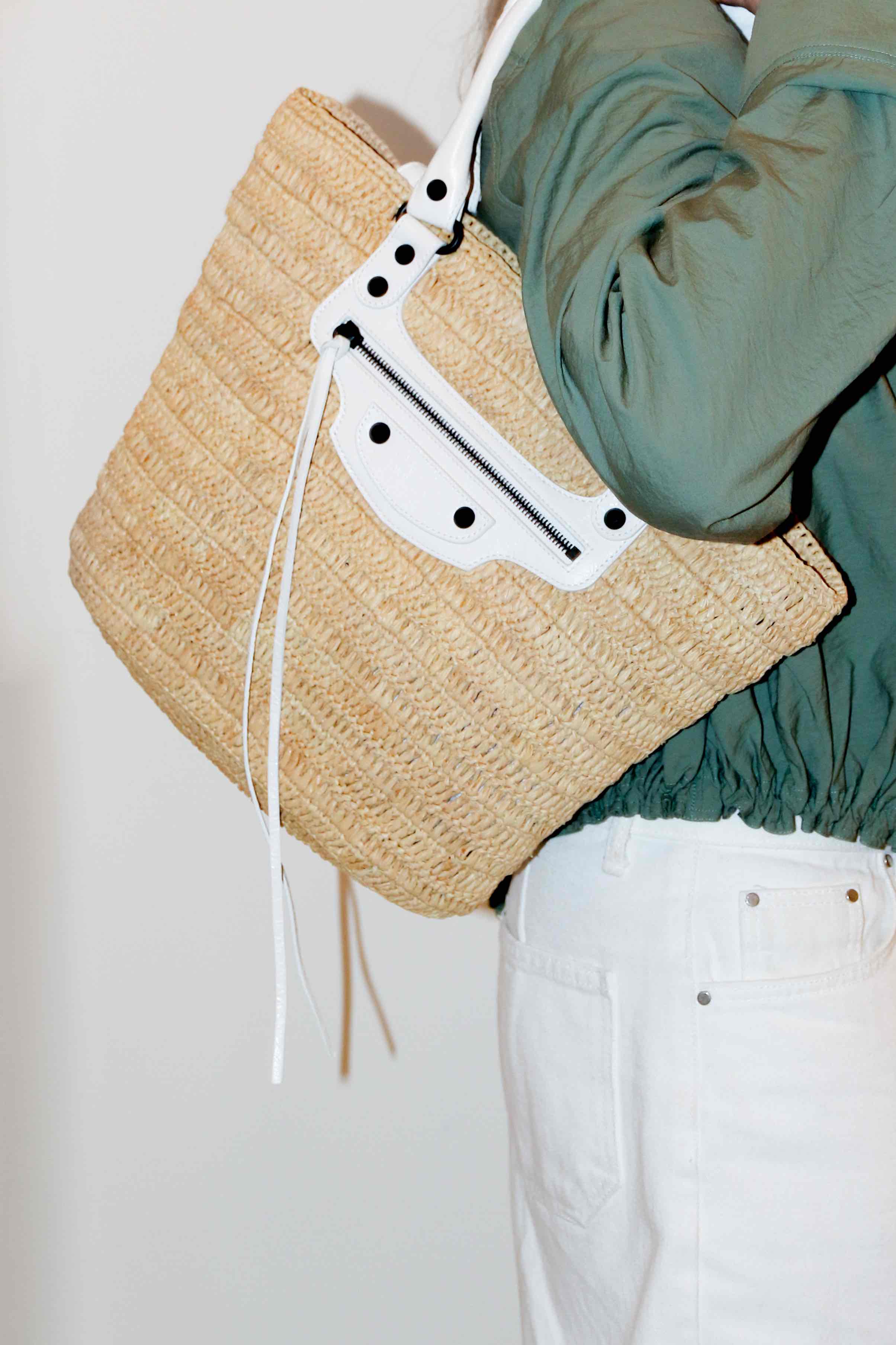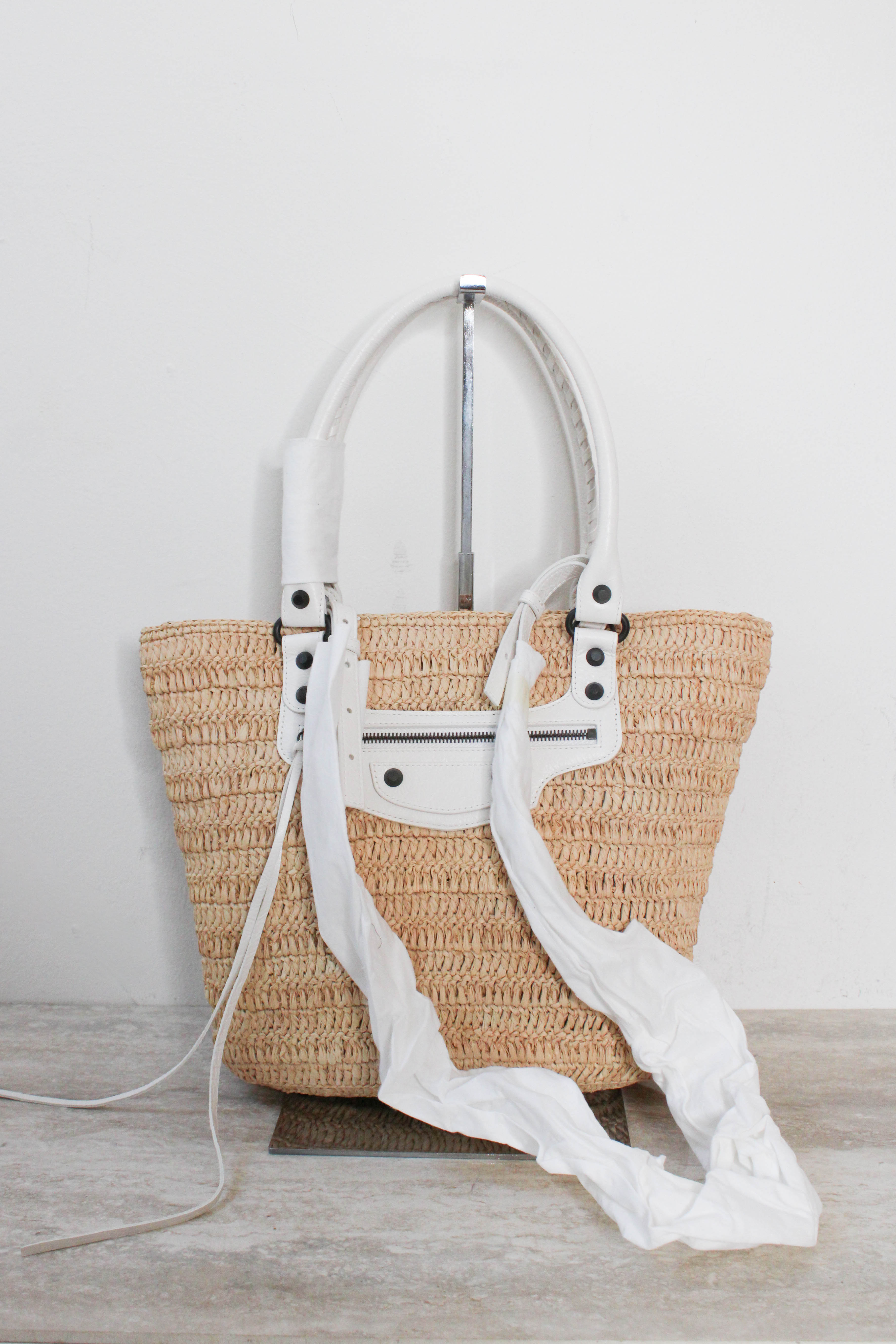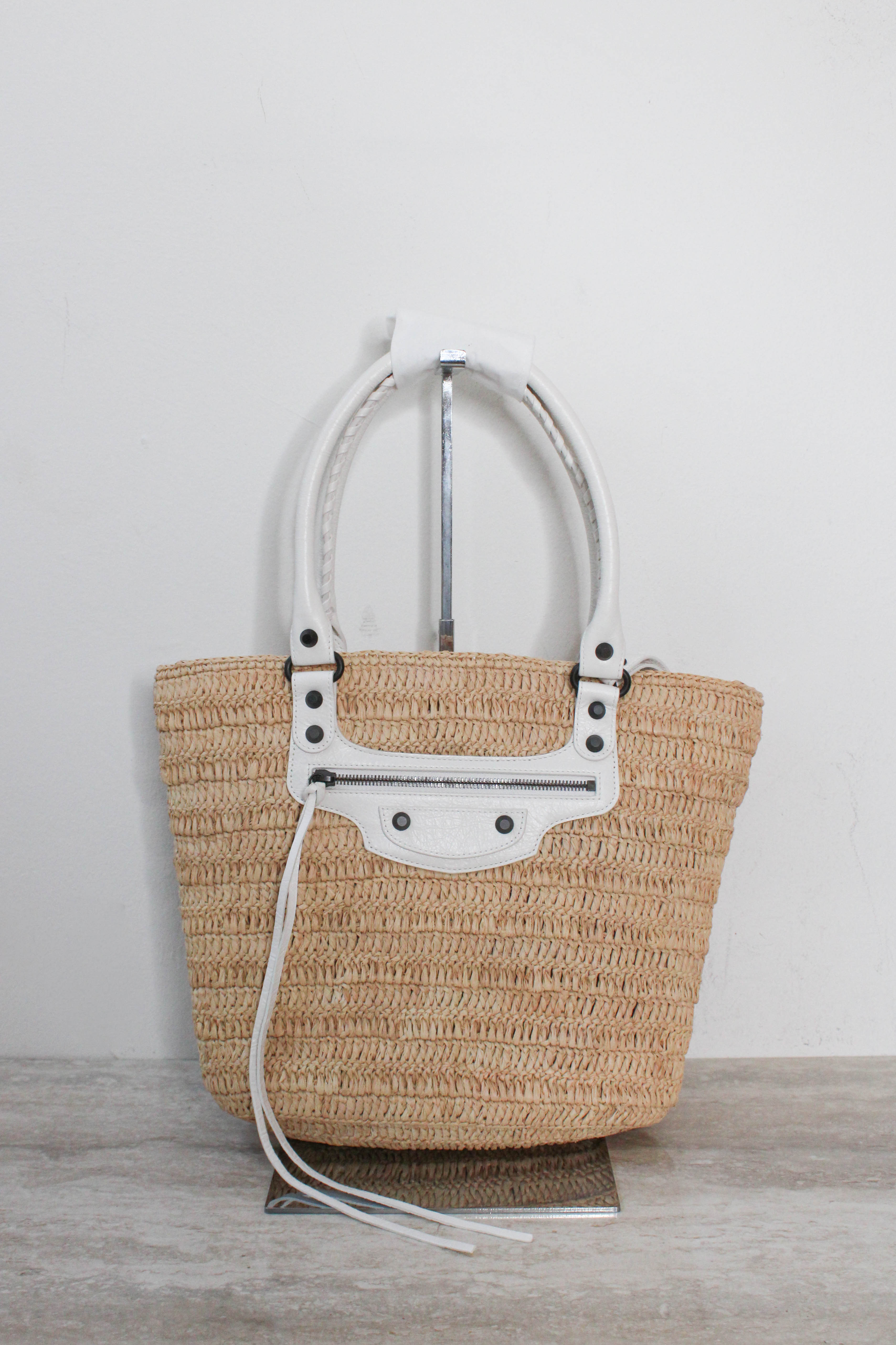 White/beige medium Raffia Le City basket bag. With dustbag. Raffia 100%. Leather 100%.