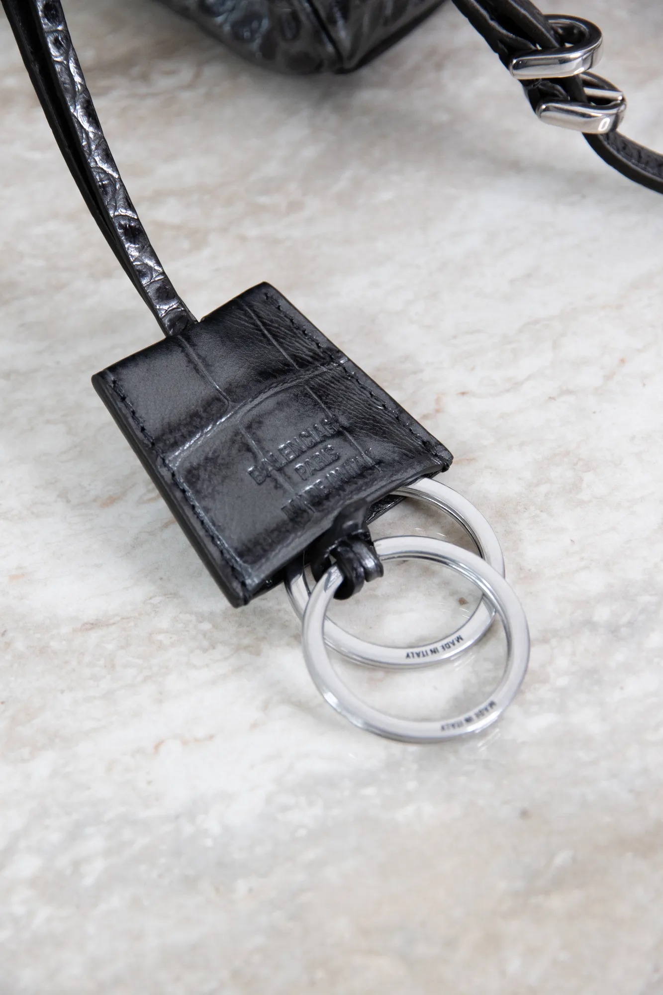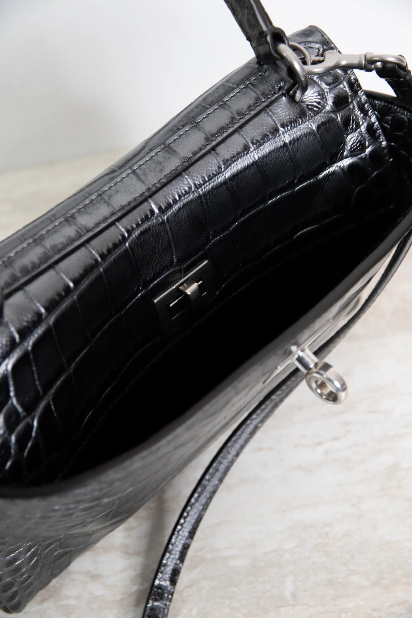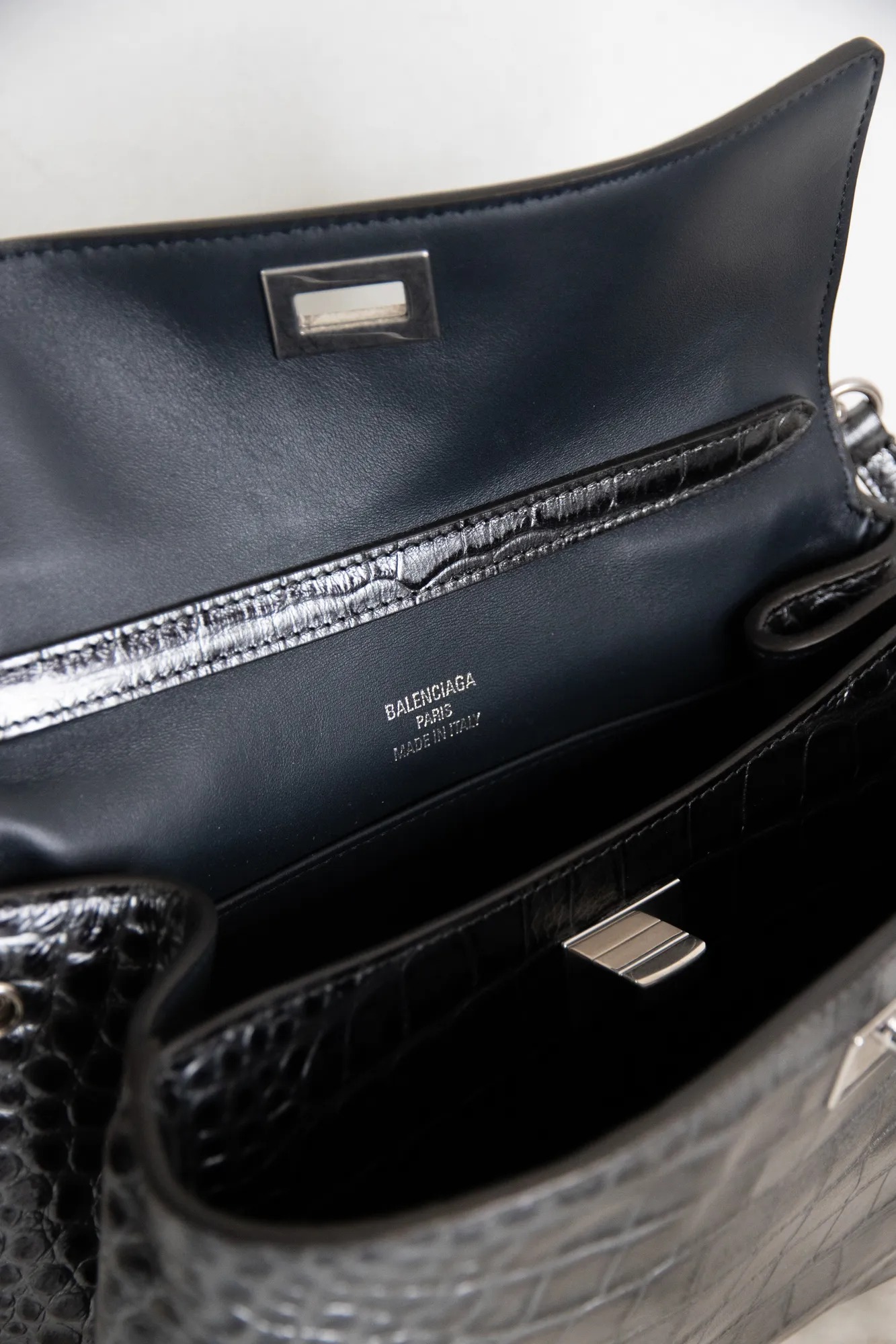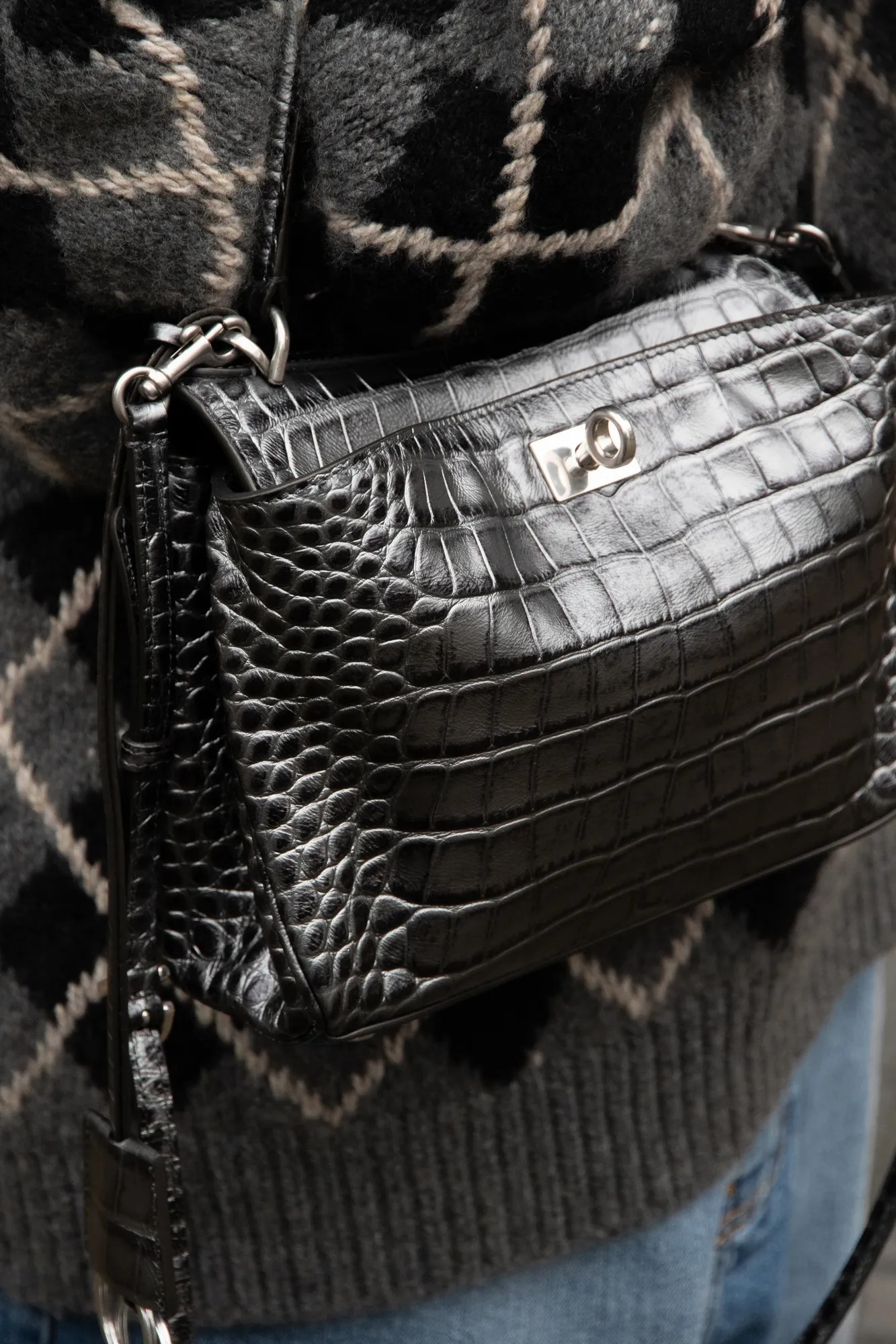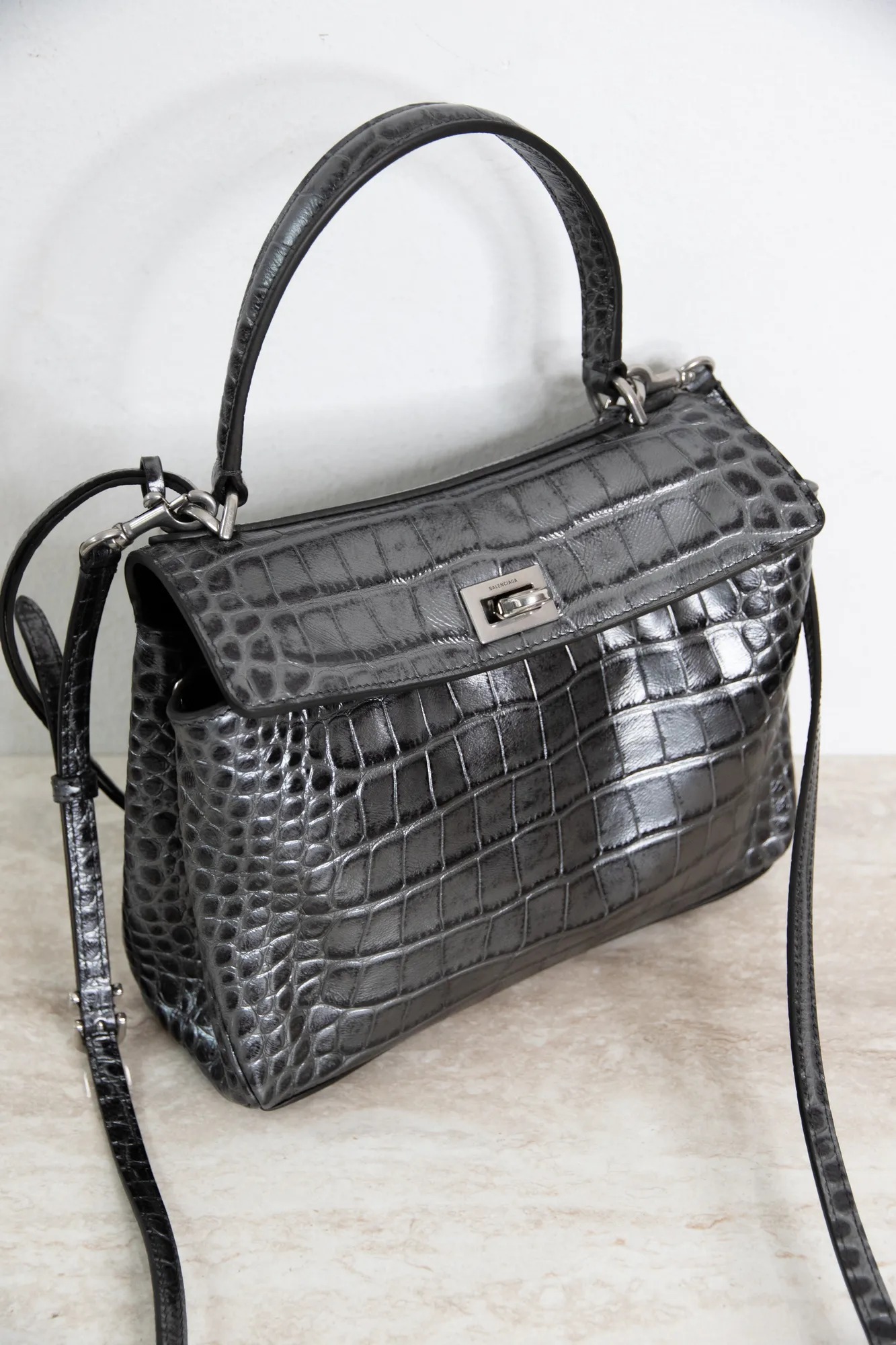 Balenciaga silver alligator print Rodeo bag.