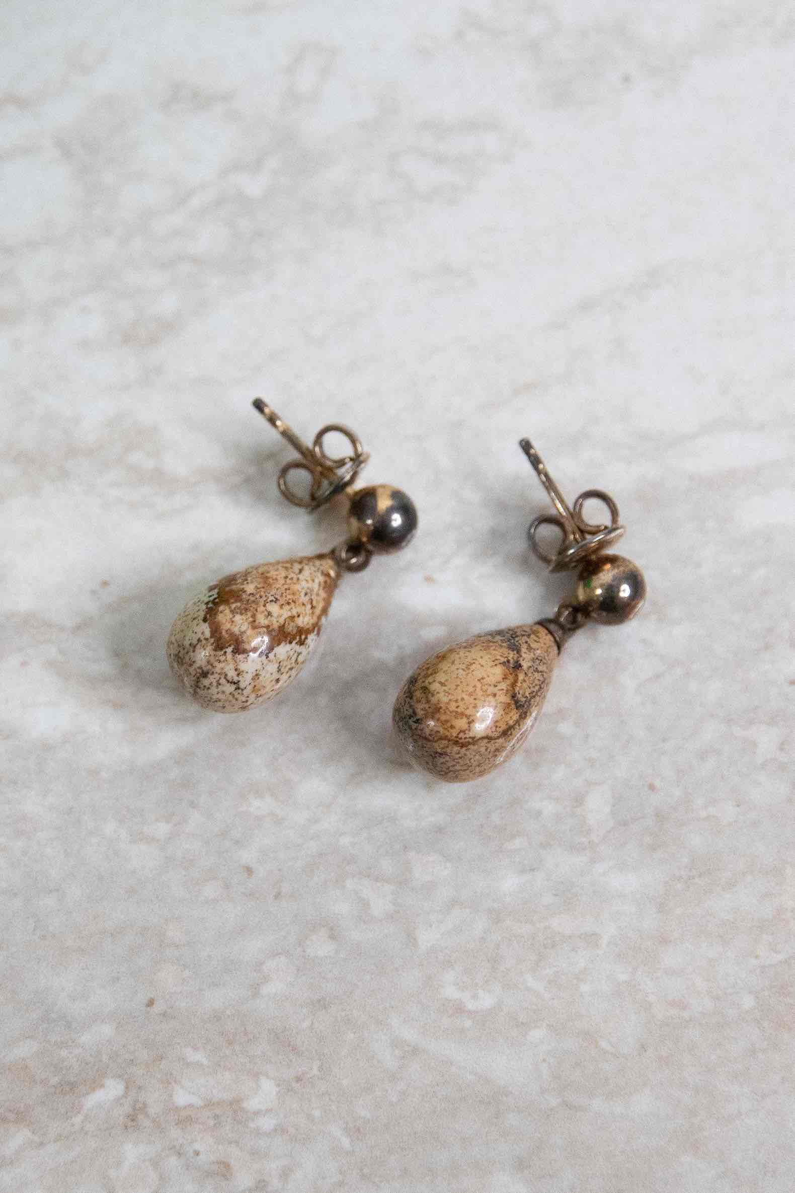 Goldtone earrings with jasper stone. With dust bag and box.