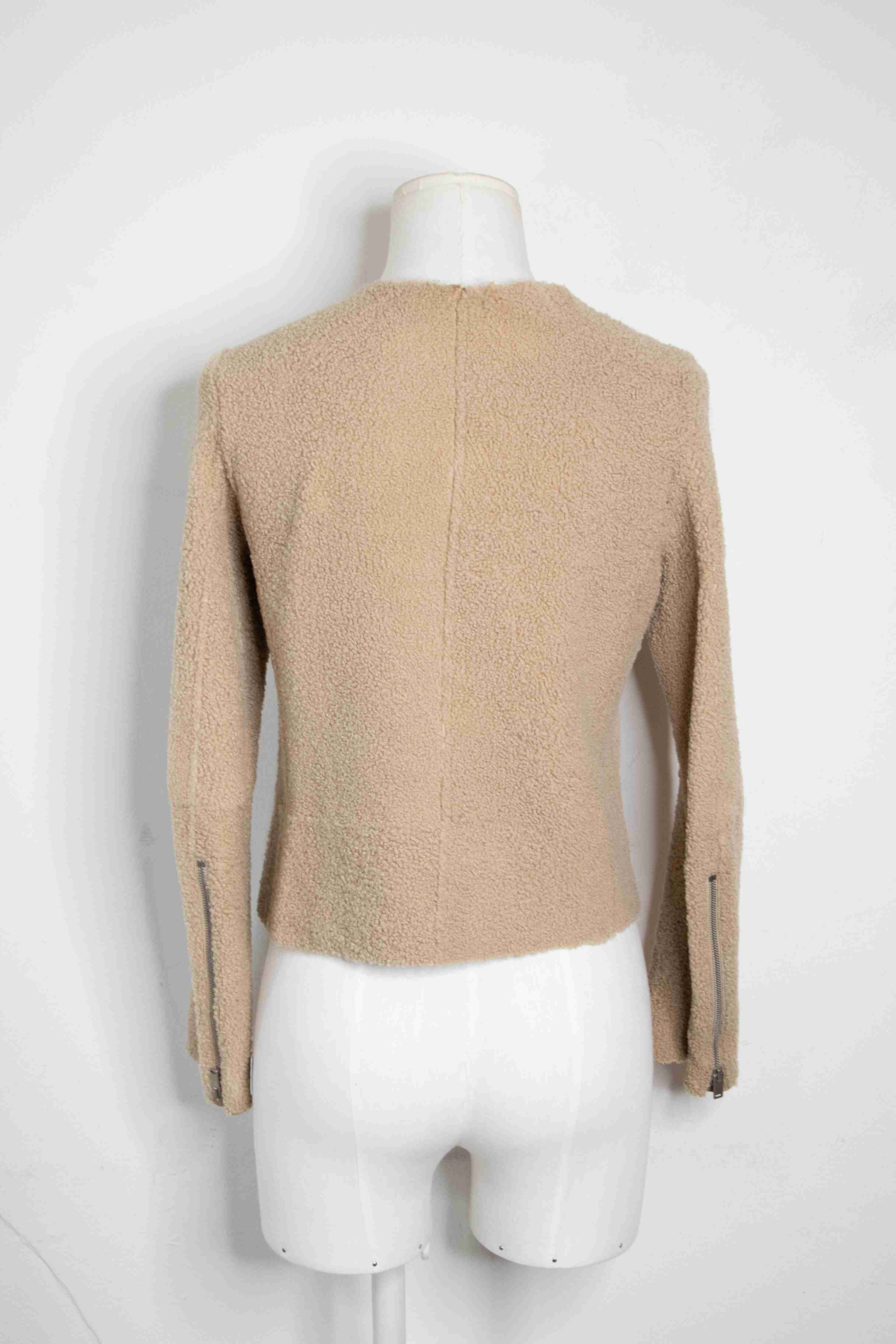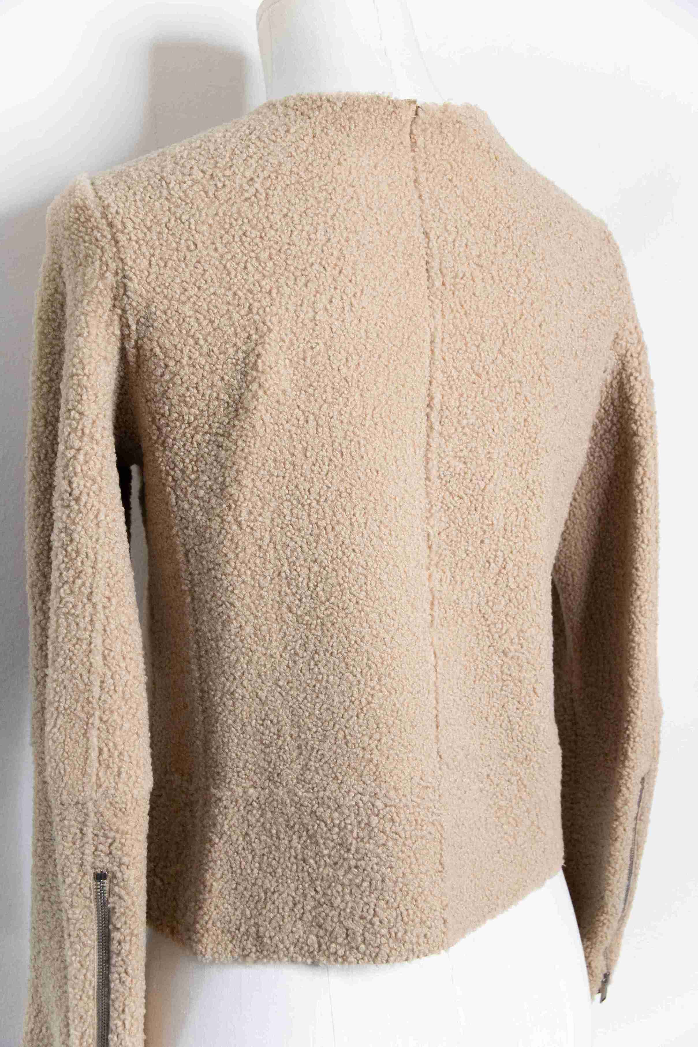 Beige shearling leather jacket. With zipper. 100% agneau.