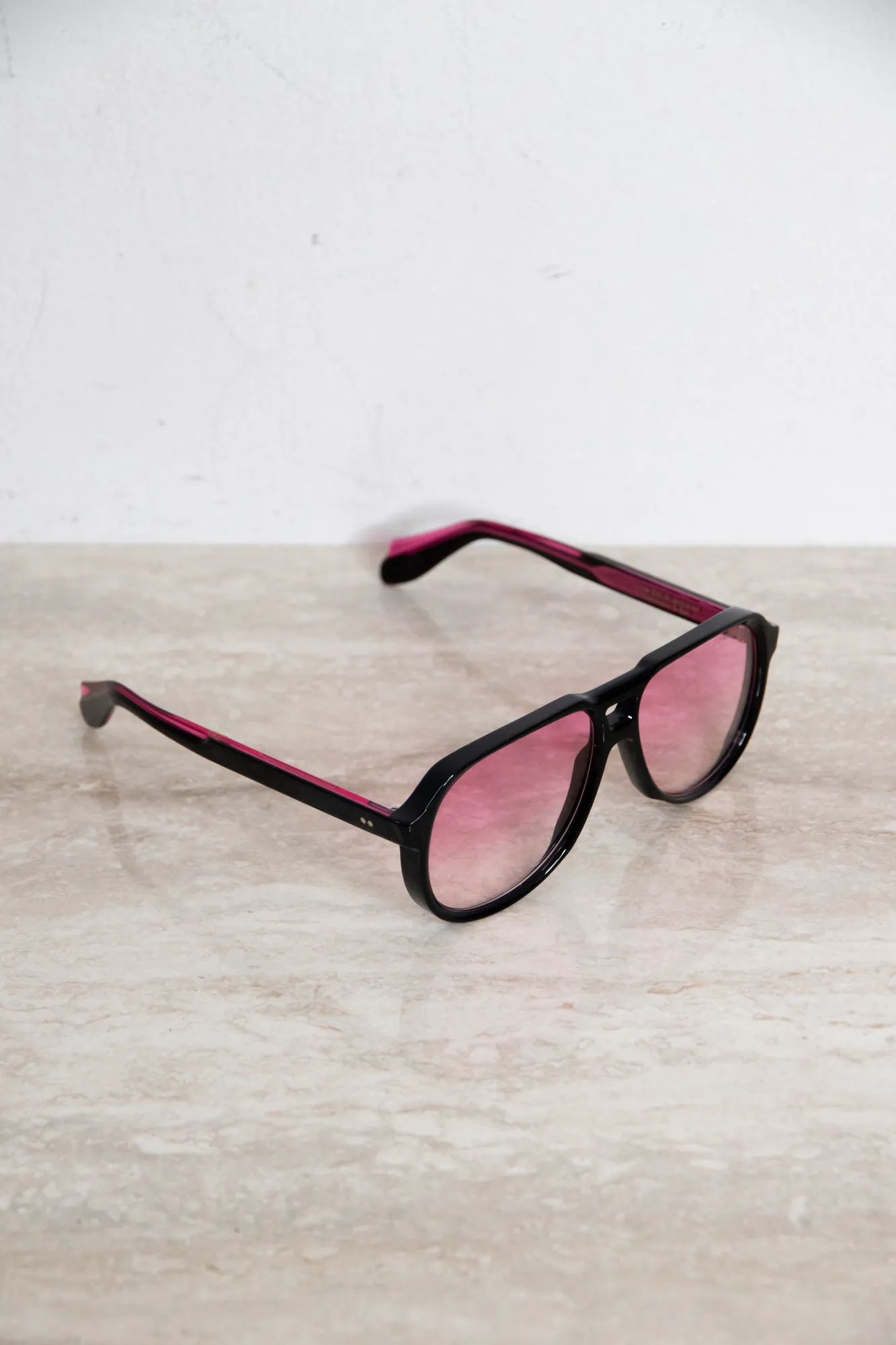 Black pilot sunglasses with pink glasses. With box.