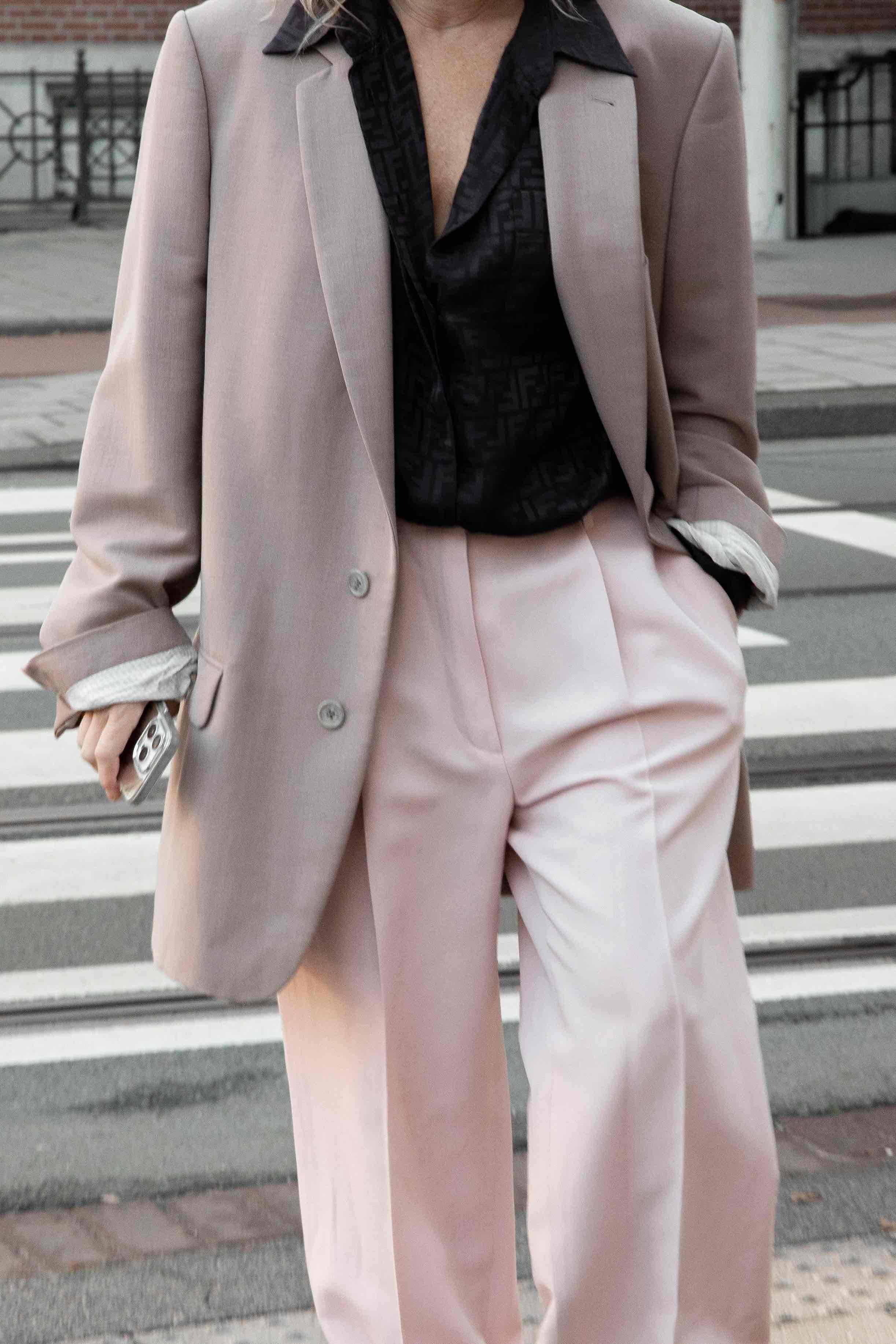 Blush single breasted blazer. Material label missing. Small hole on the left arm.