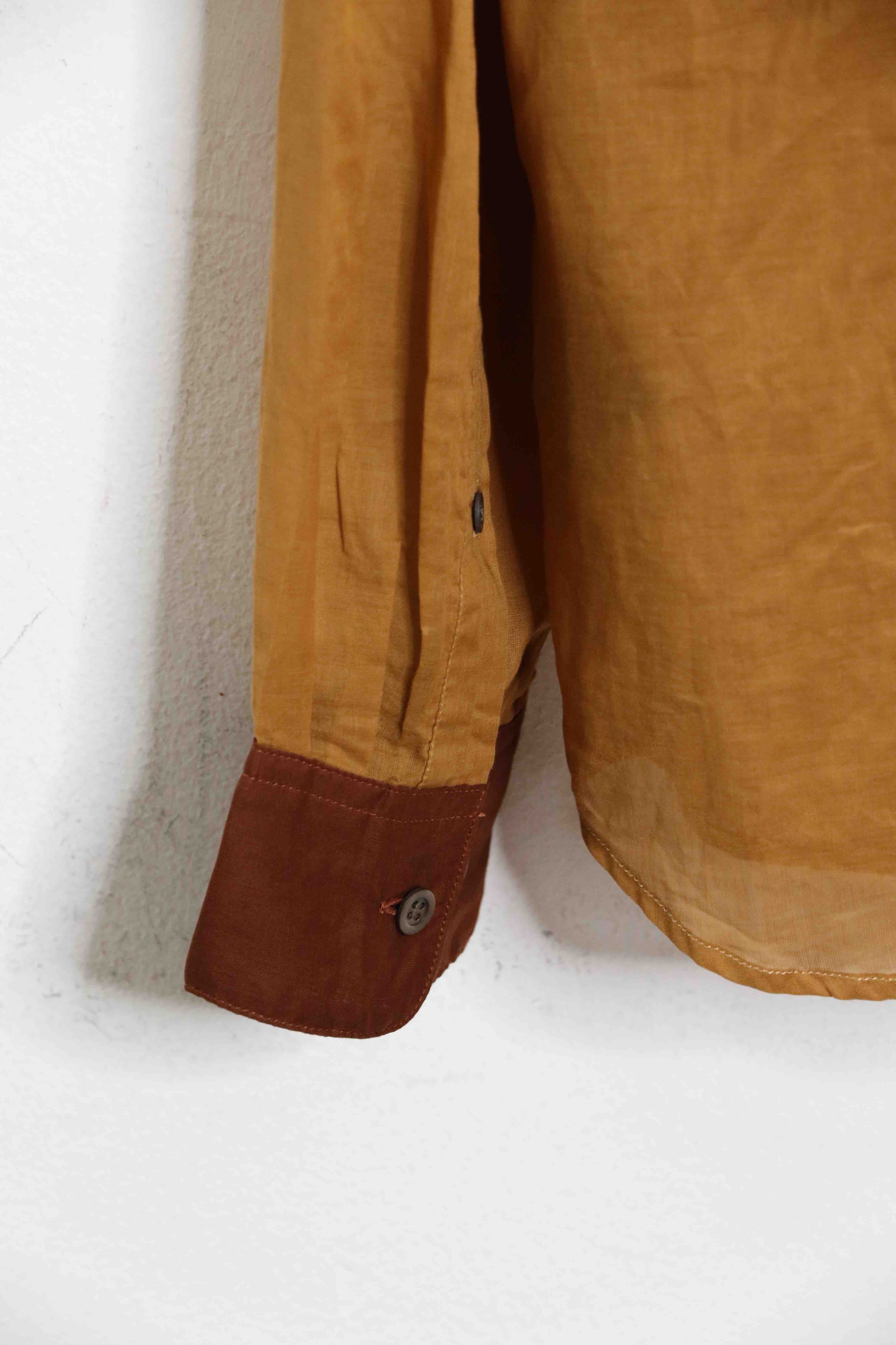 Brown/Ochre transparent blouse. Contrast details. 100% Cotton.