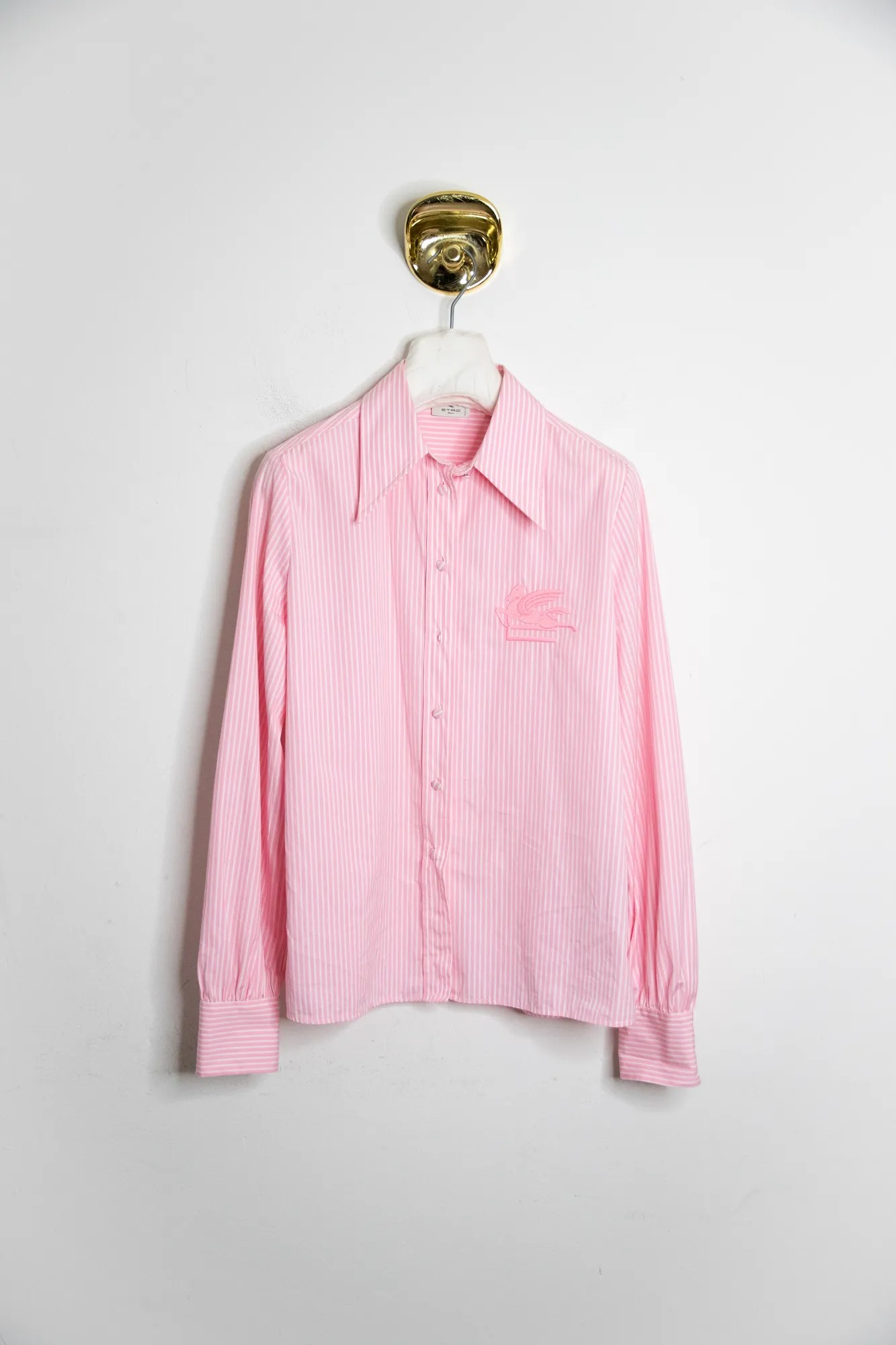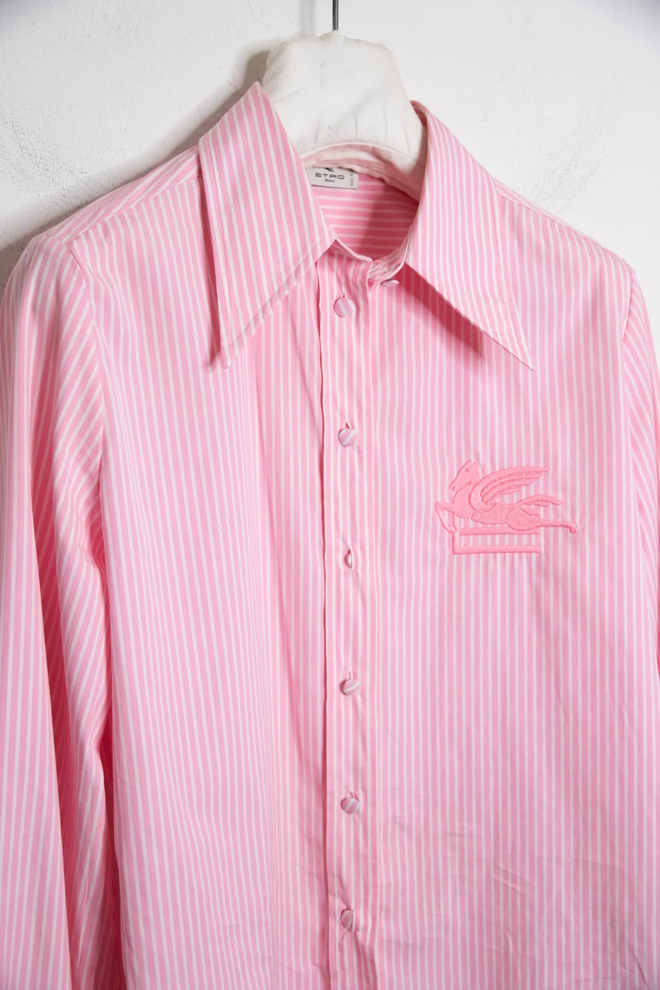 Etro striped blouse with pointed collar and embroided logo on left breast. 100% cotton.
