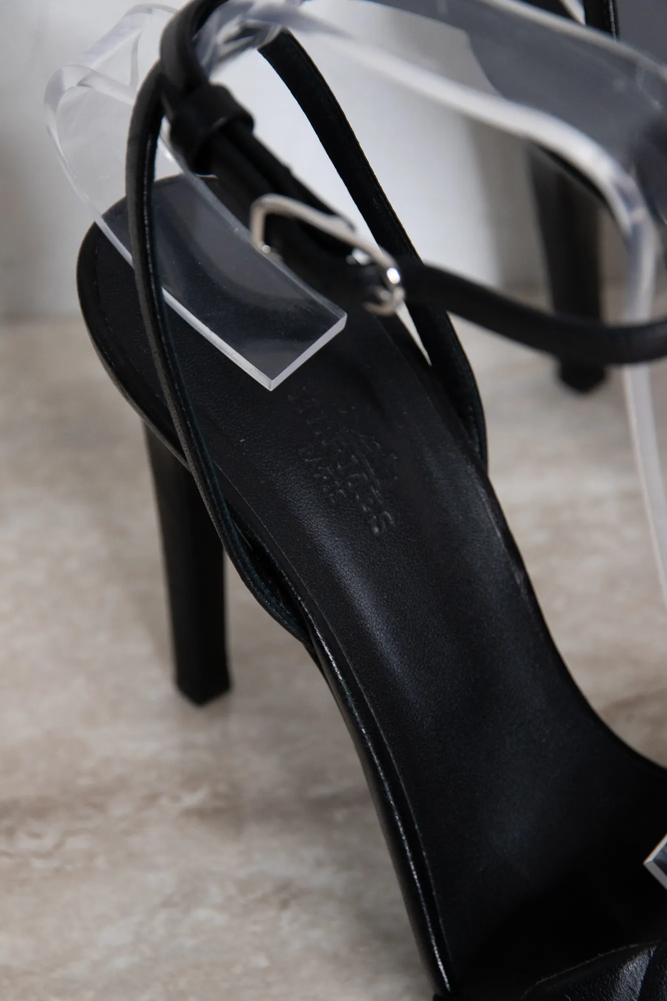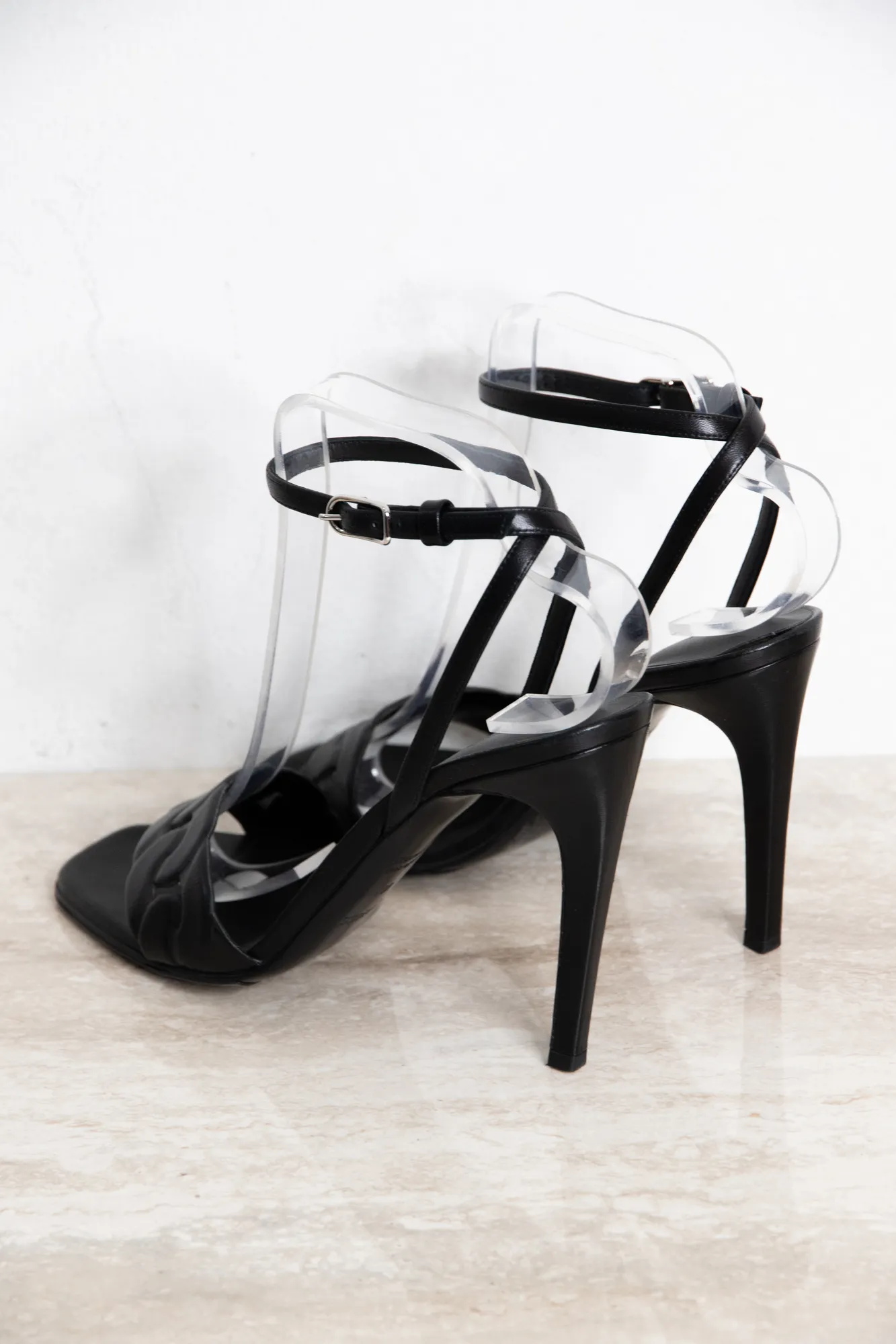 Black sandal pump with braided leather band. Small ankle band. With dustbag.