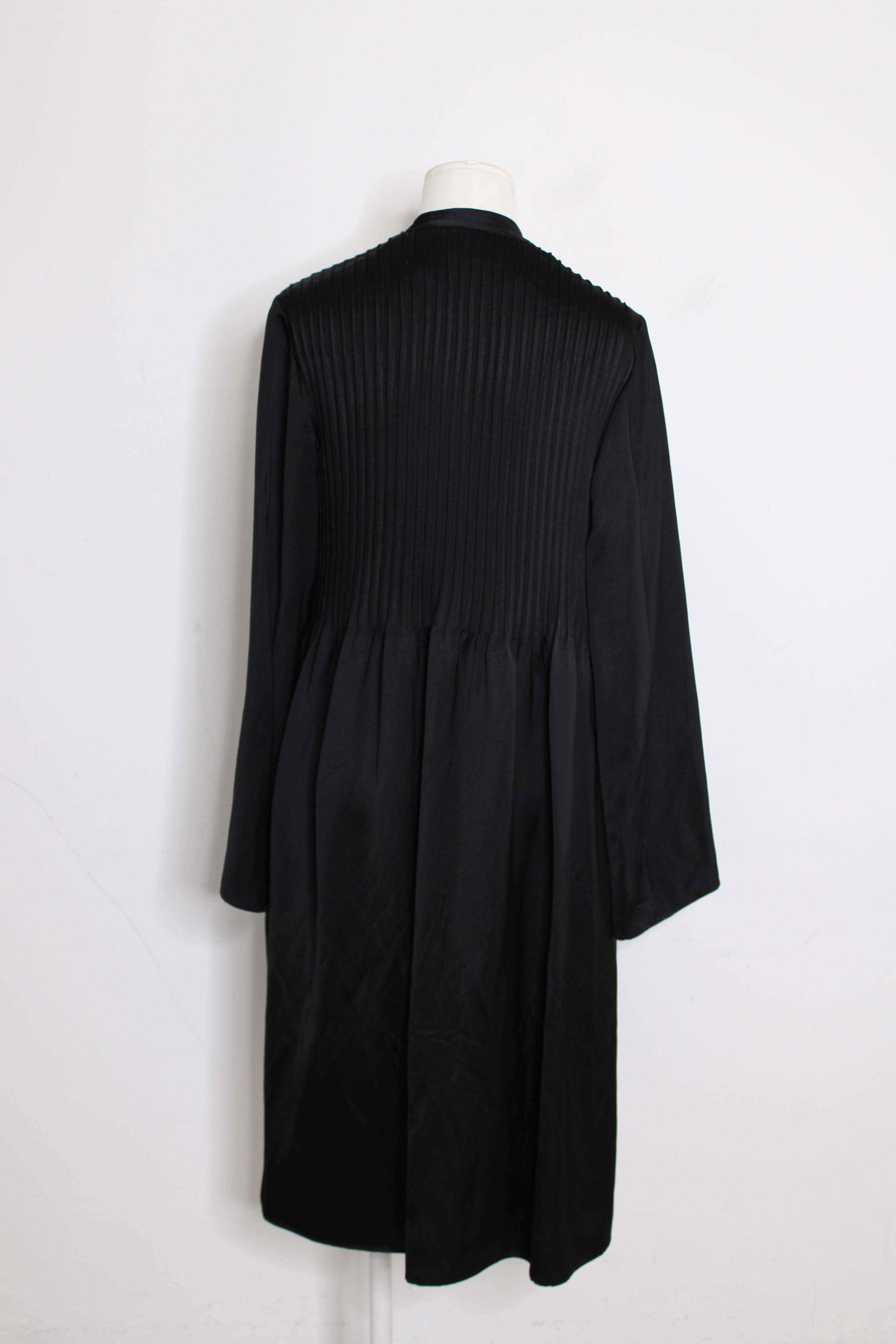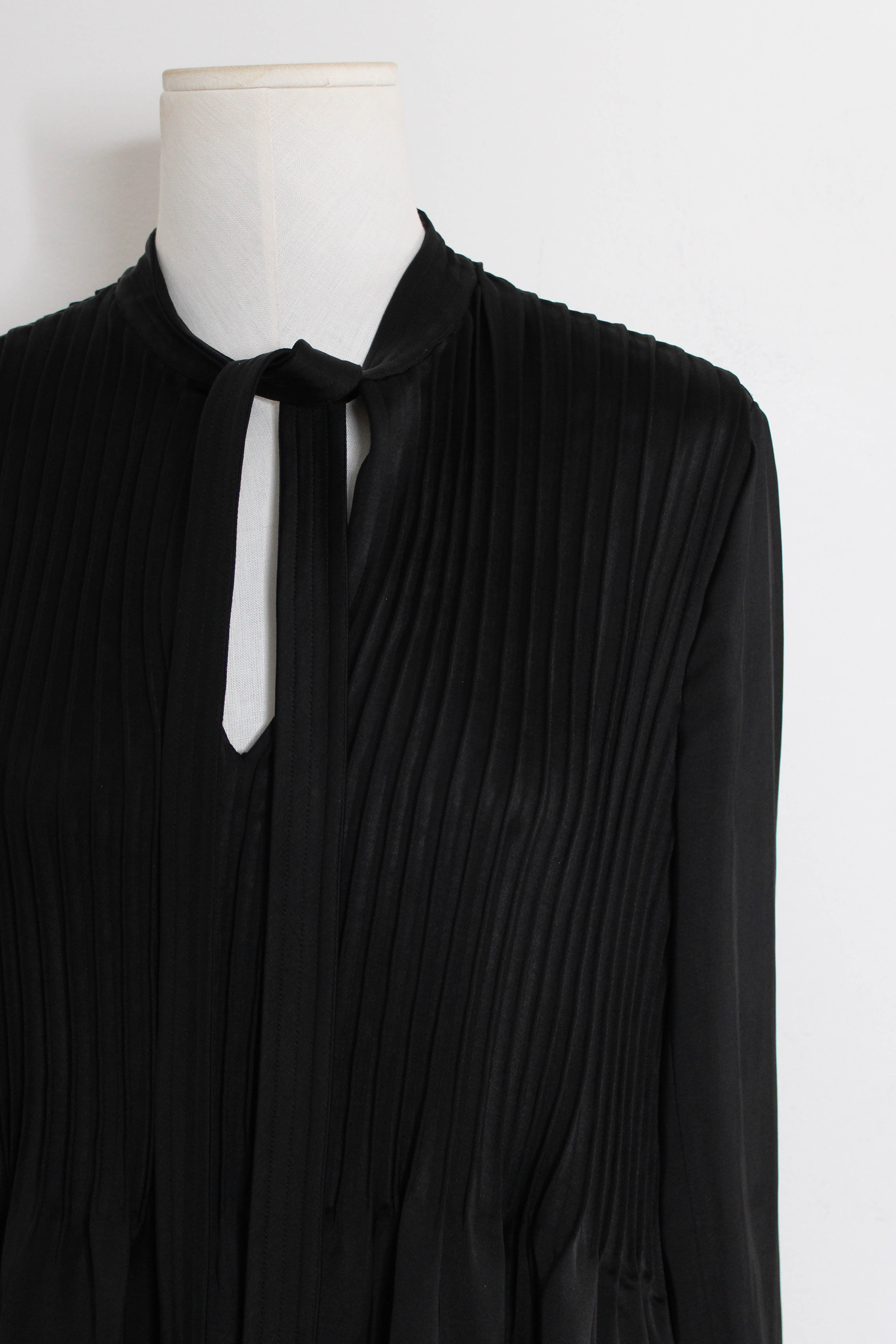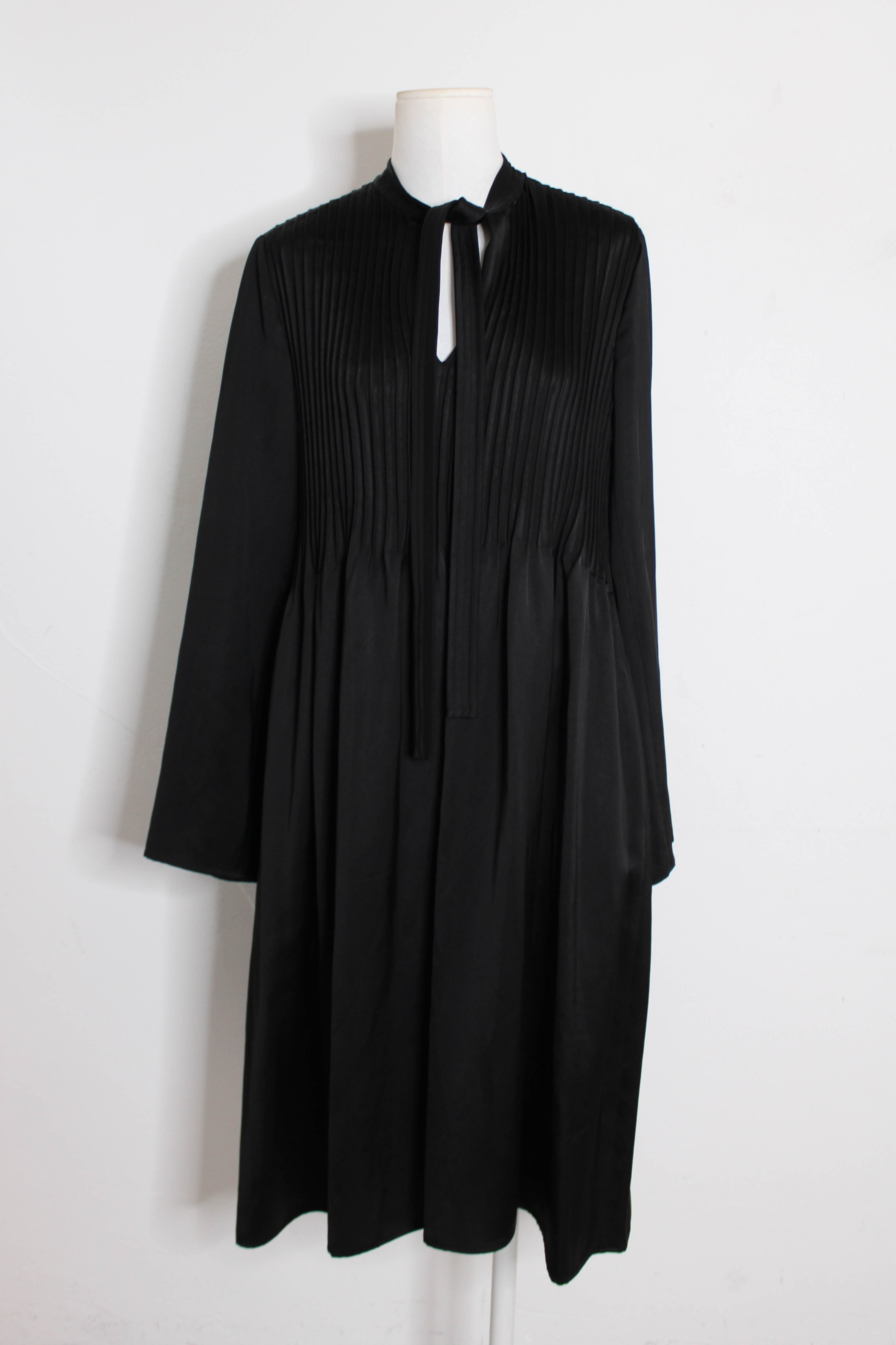 Black satin dress with bow tie and pleated detailing. Viscose,linnen.