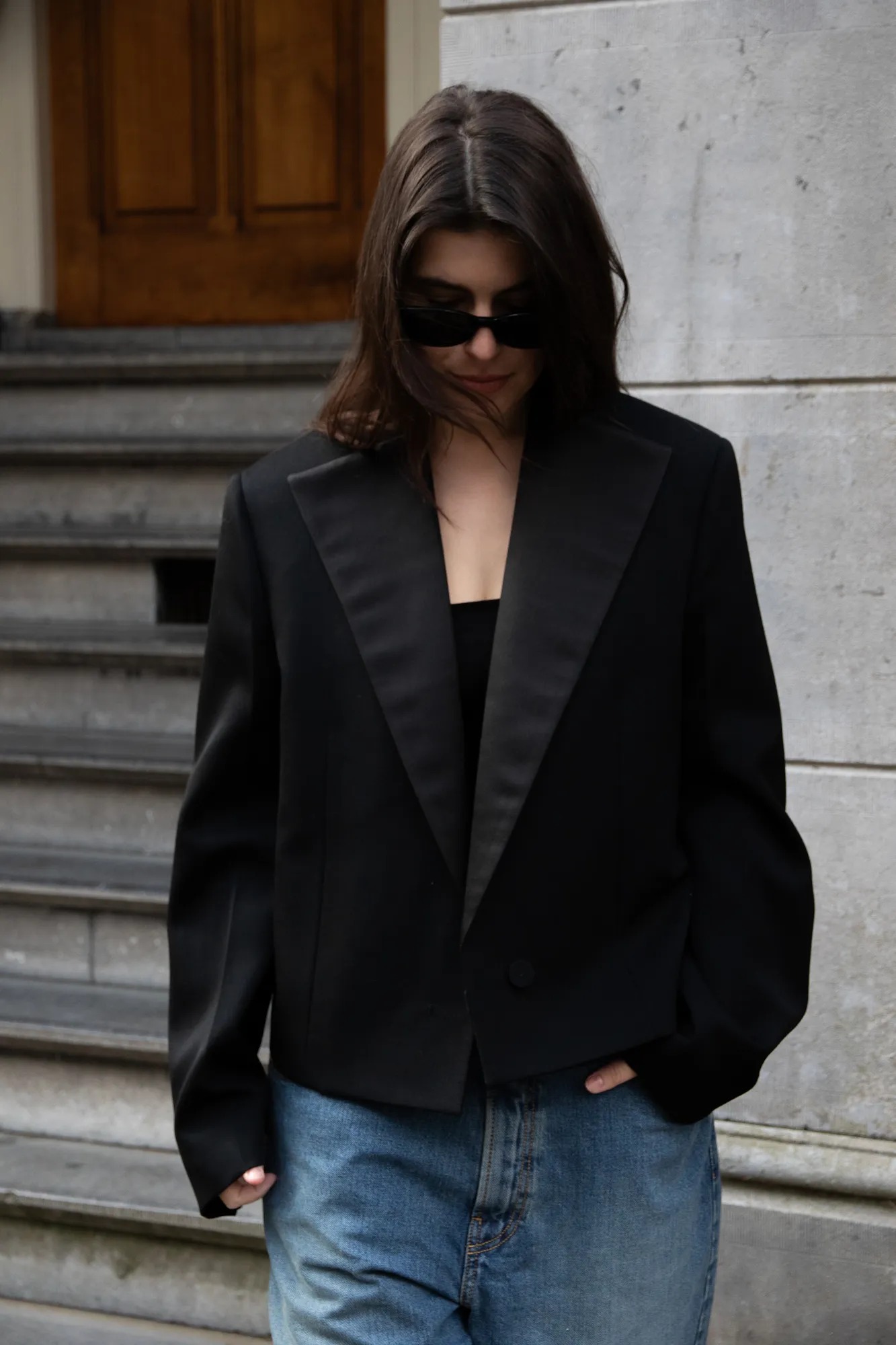 Jill Sander black cropped blazer 100% wool.