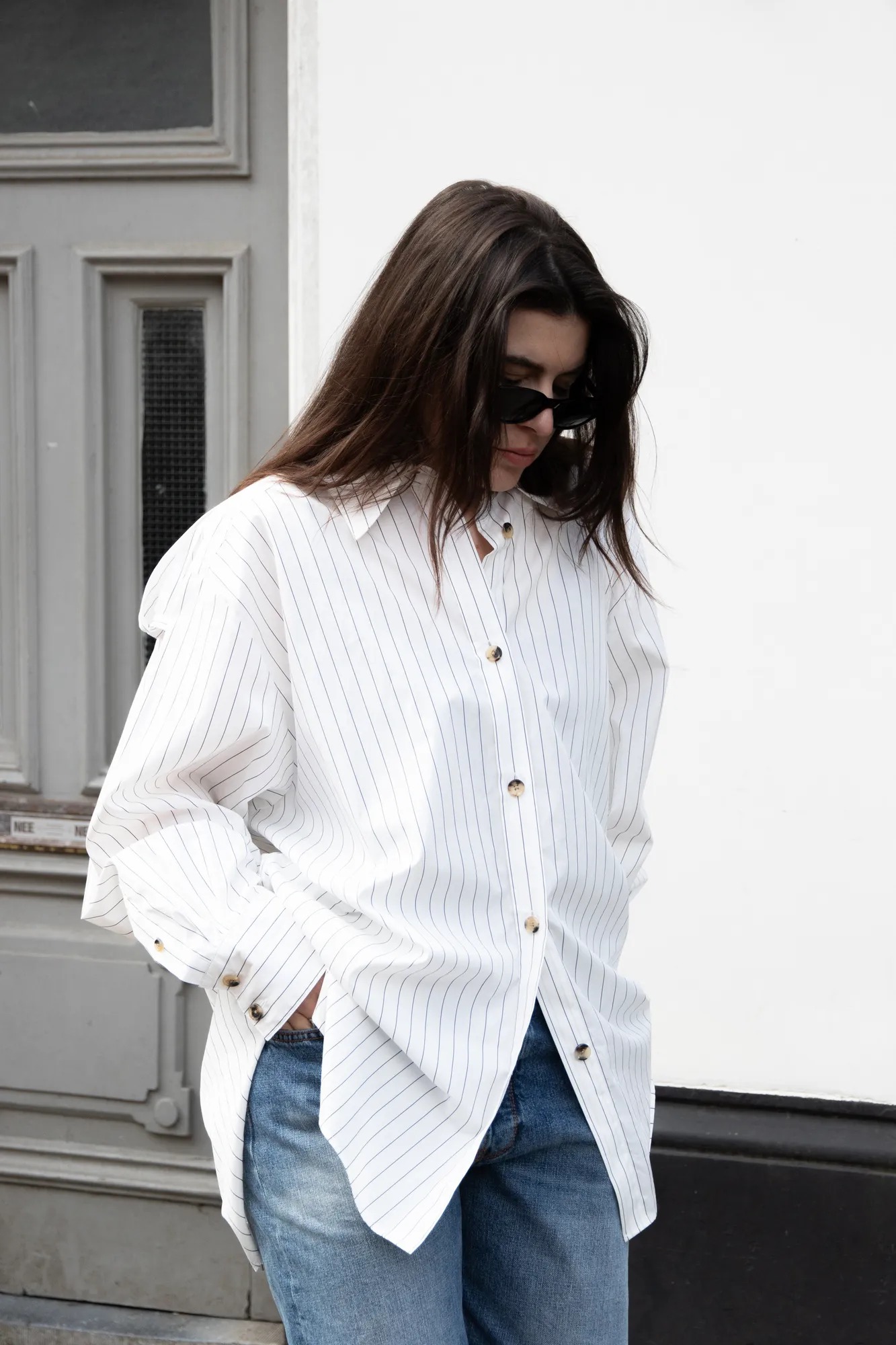 Khaite striped oversized blouse with epaulets. 100% cotton.