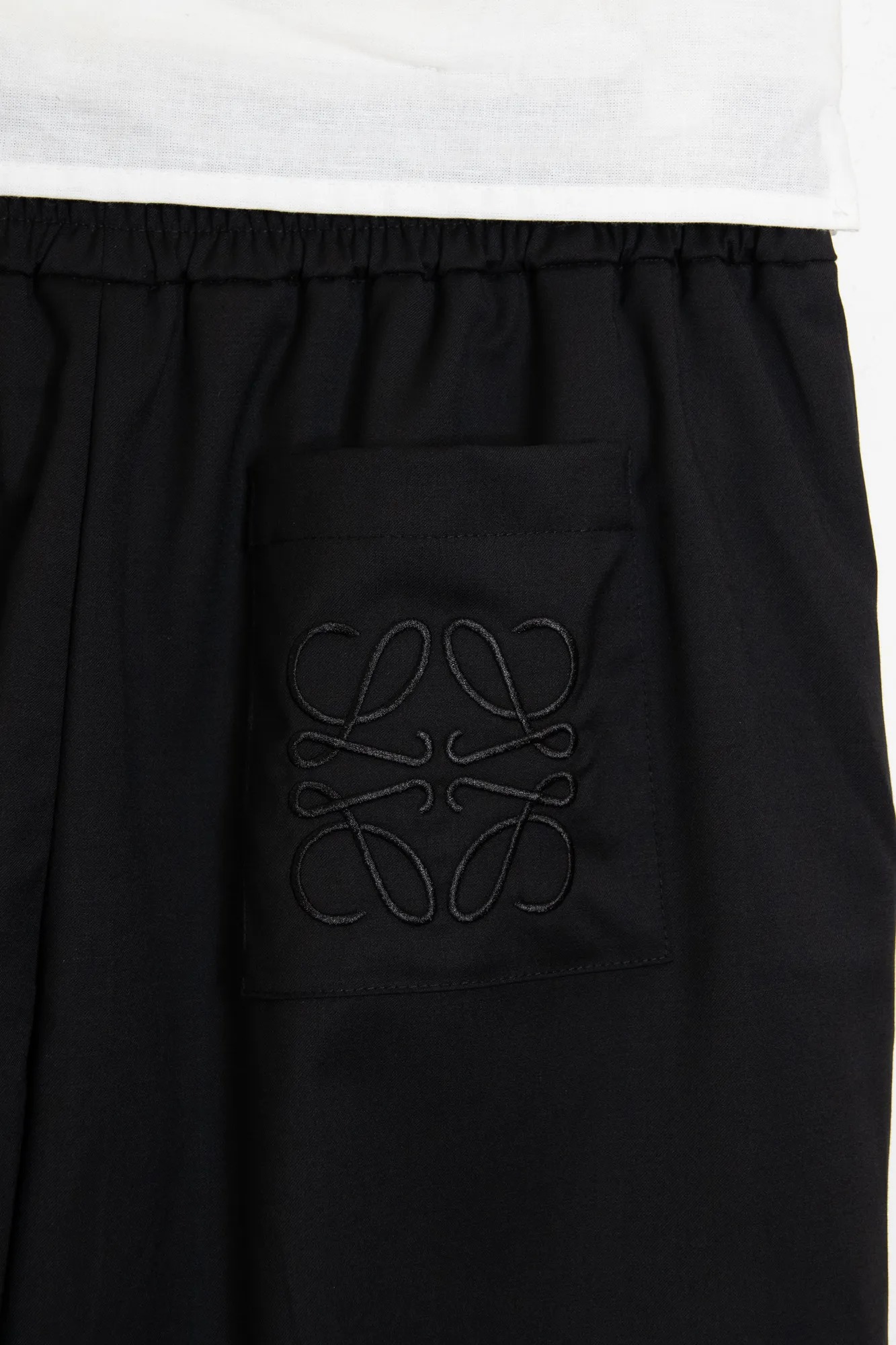 Loewe men's culotte with anagram on the back pocket and elastic waist band. 98% Wool, 2% Elastane.