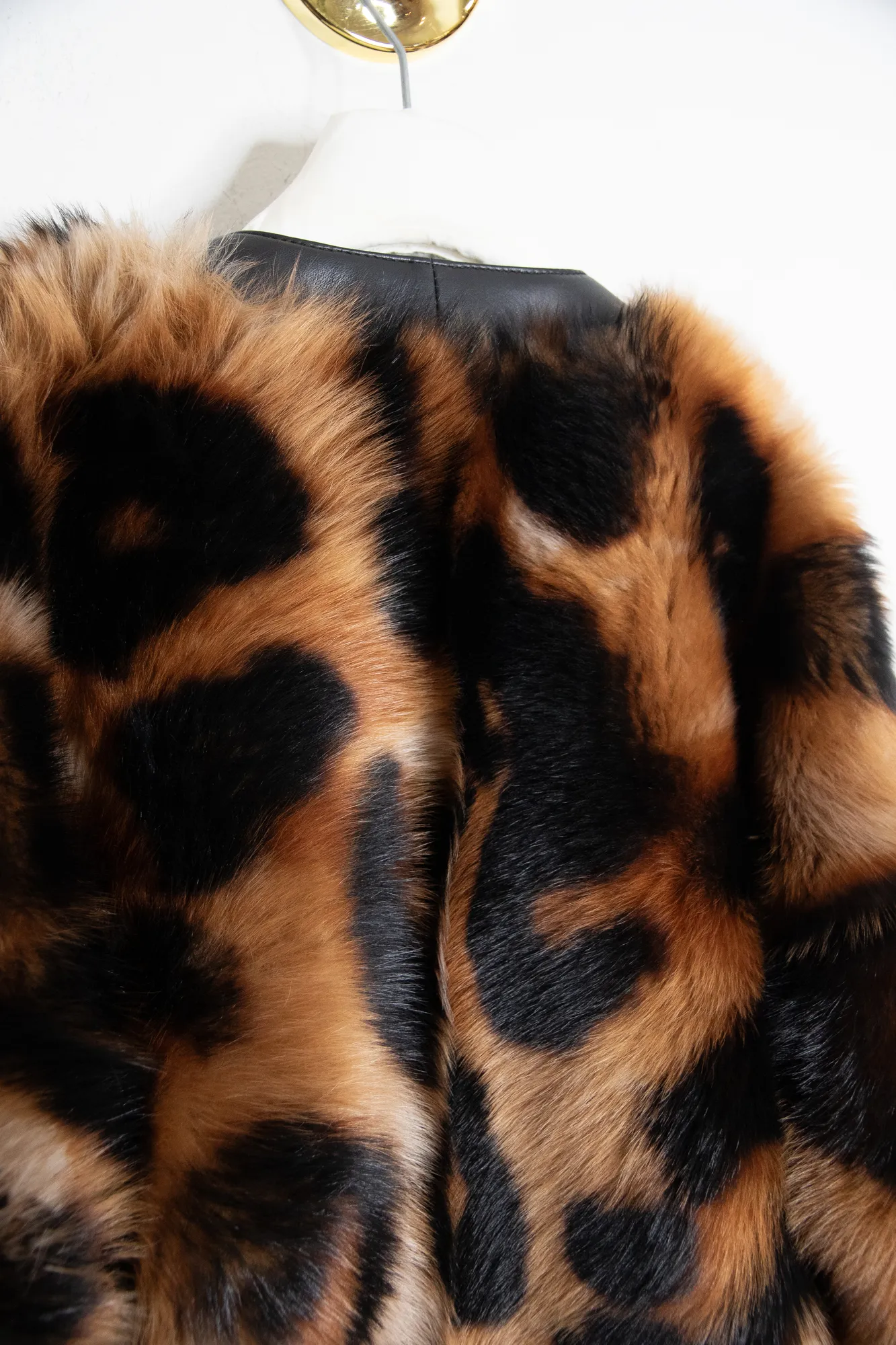 Cardigan in medium-weight printed shearling featuring a leopard pattern and dropped shoulders. V-neck. Button front fastening. Seam pockets. 100% lambskin.
