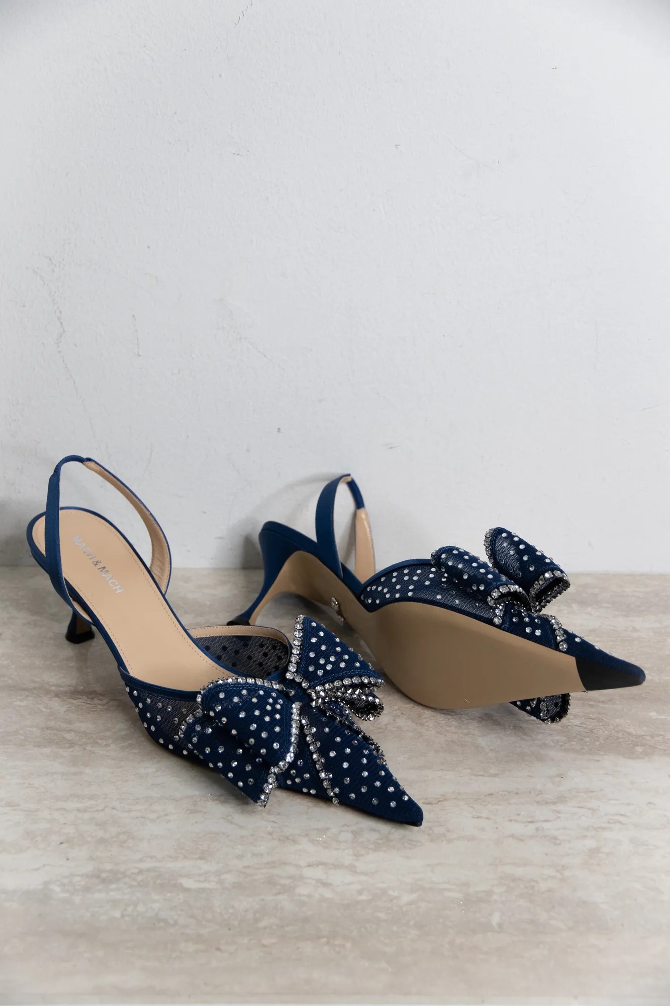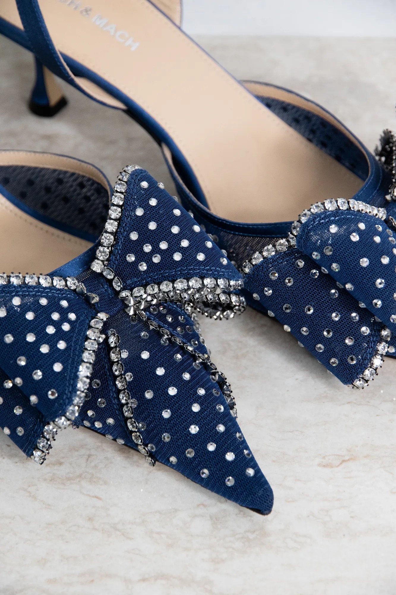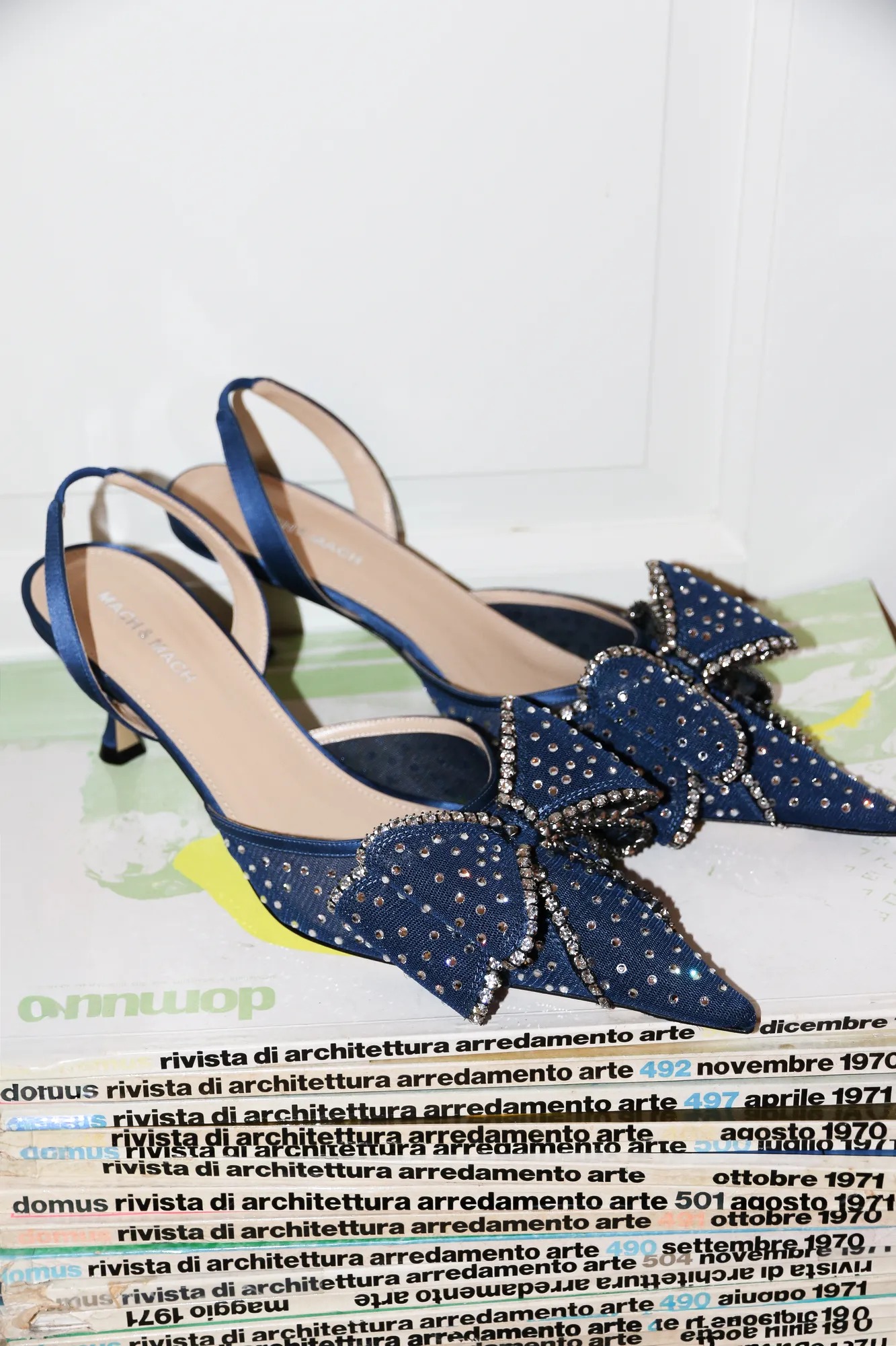 Mach&Mach mesh slingback pump with rhinestones and ribbon. Dustbag not included.