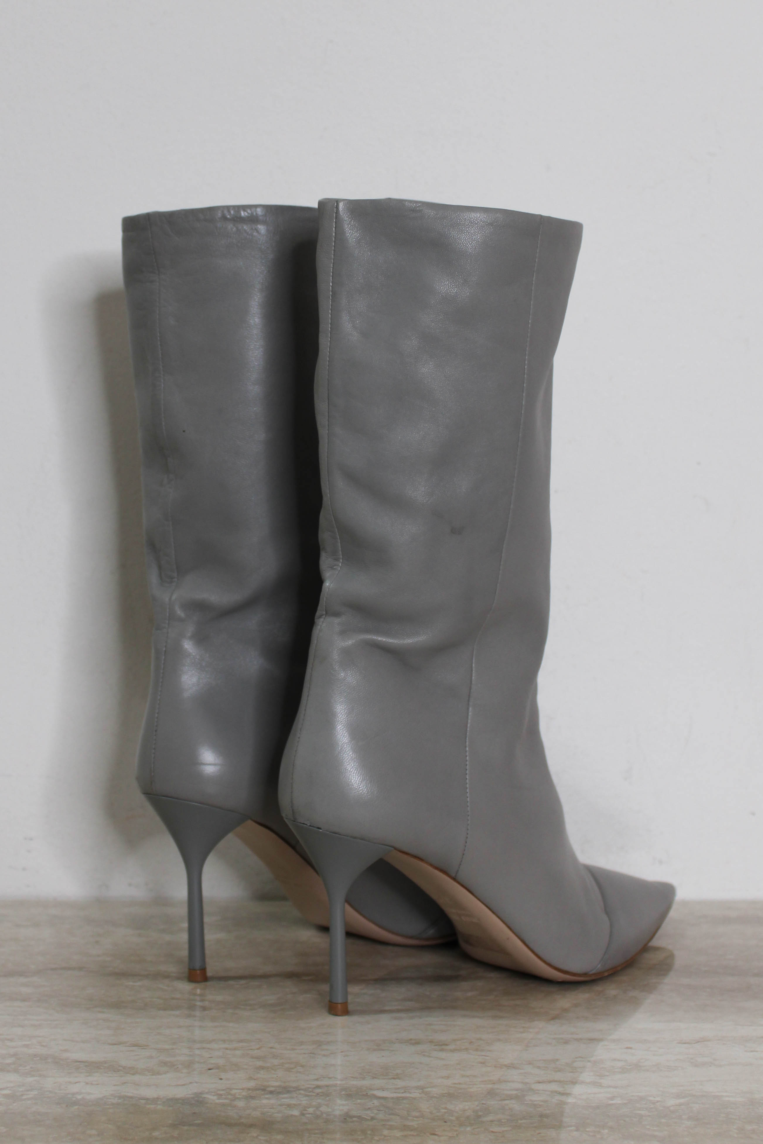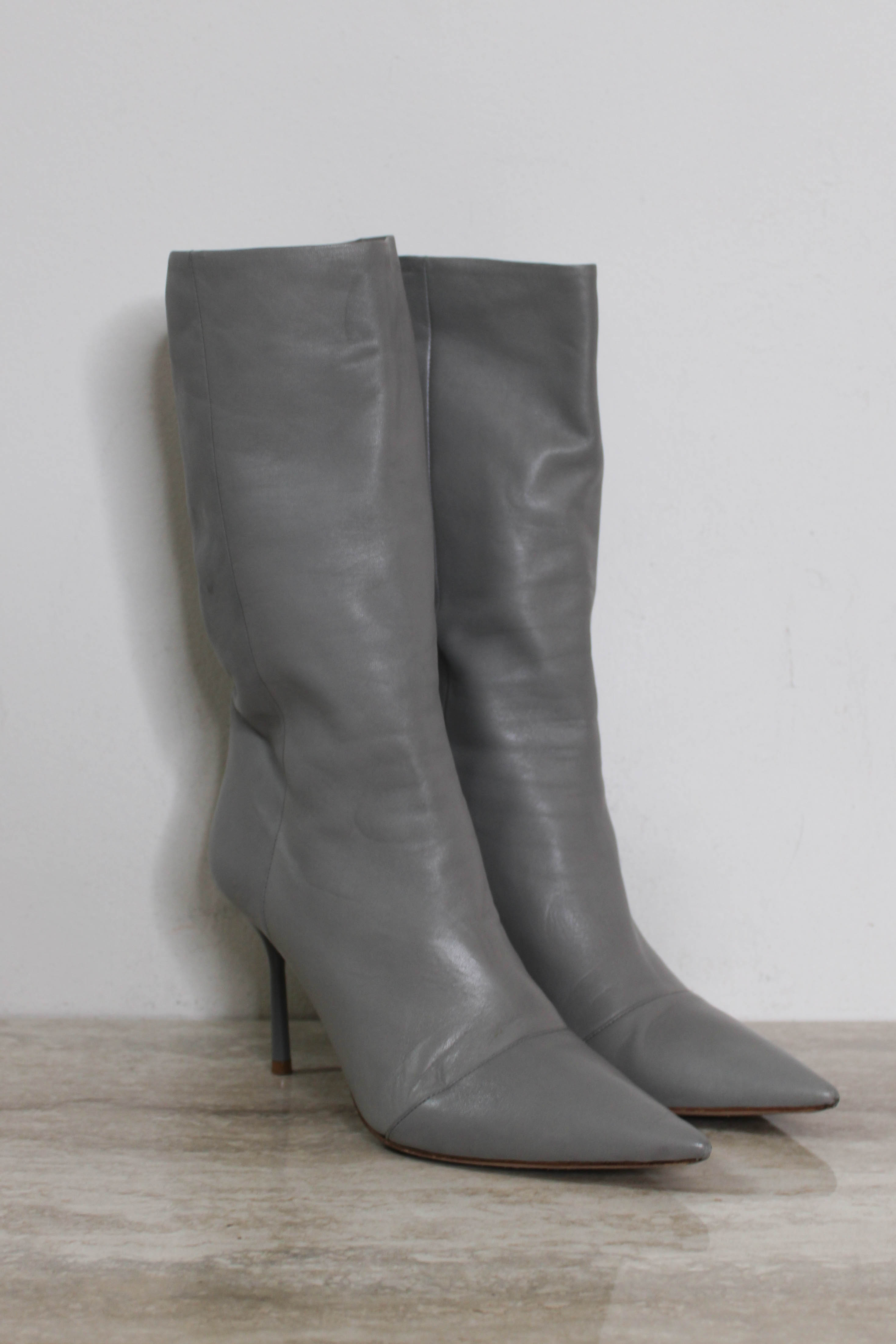 Grey slouchy ankle boots with thin heel. 9 cm.