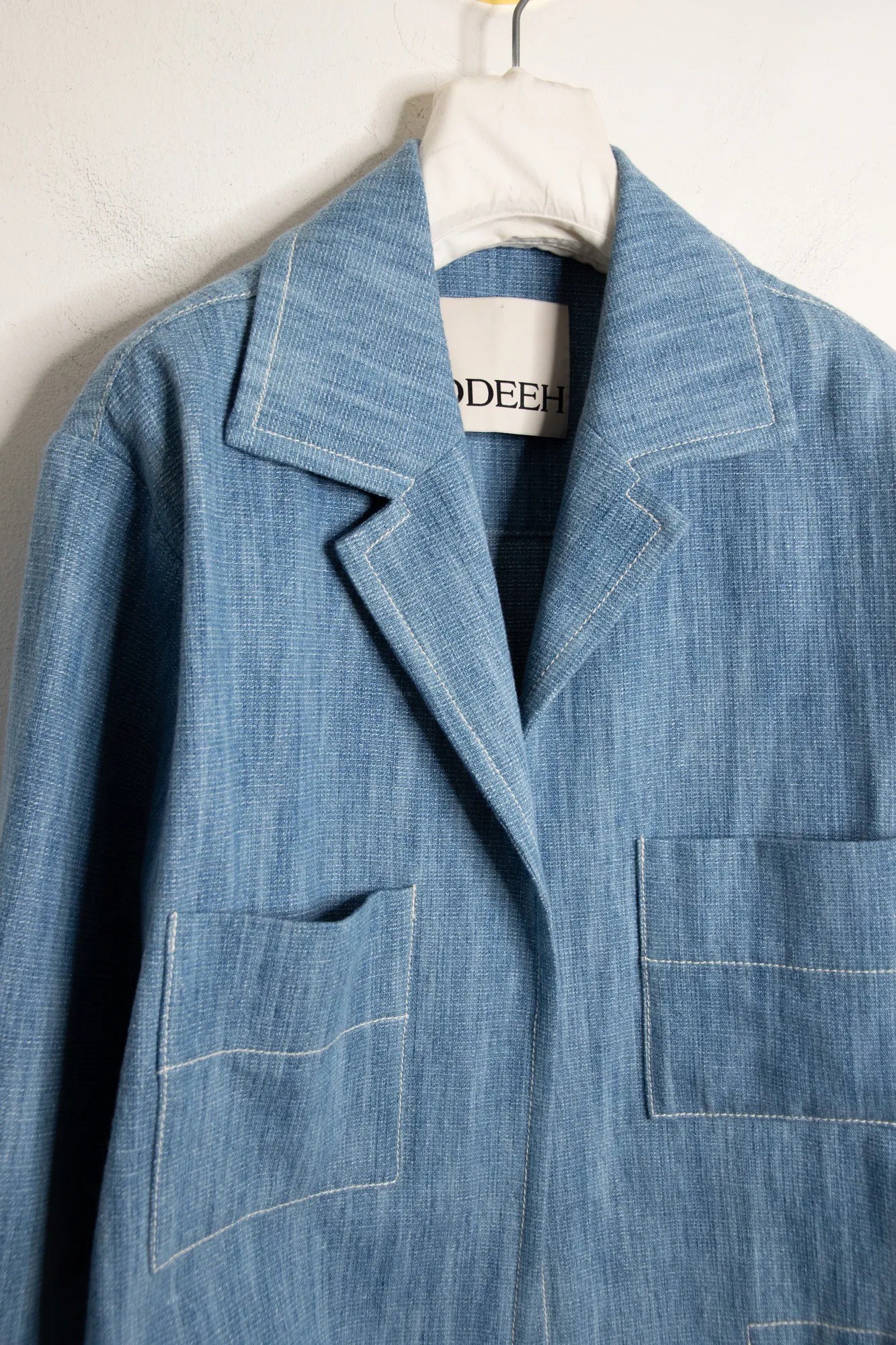 Odeeh denim jacket without closure. Cotton/linnen/viscose.