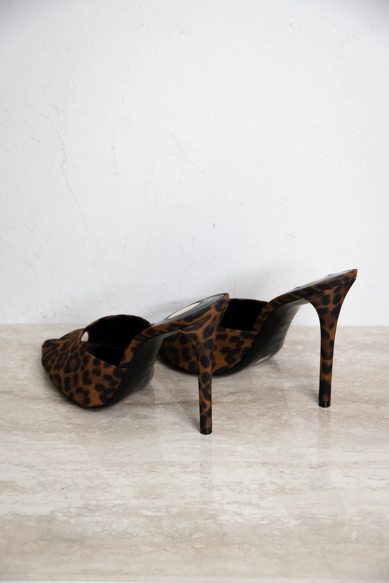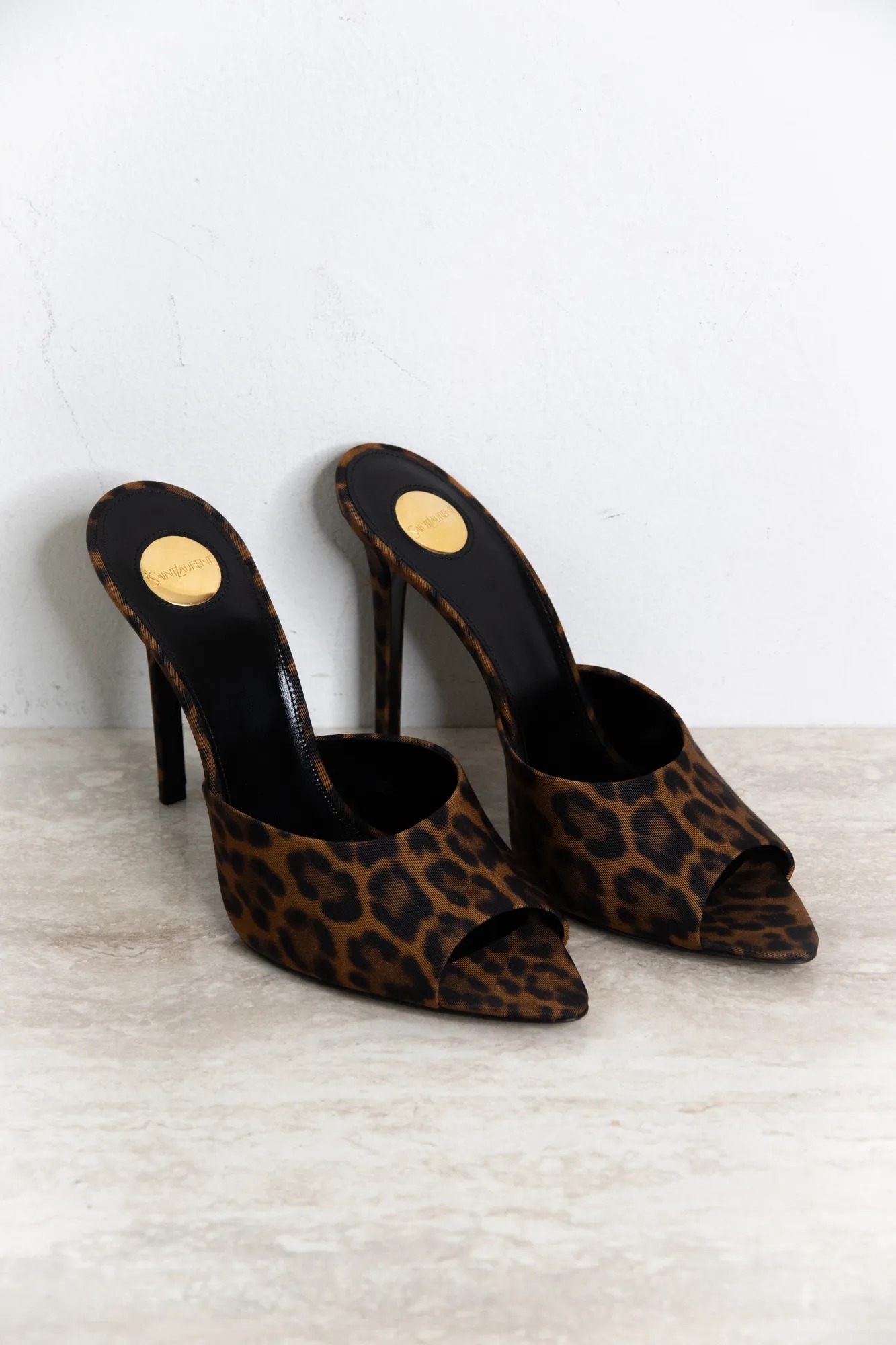 Saint Laurent mule with leopard pattern fabric. Dustbag not included. Heelhight 12 cm.