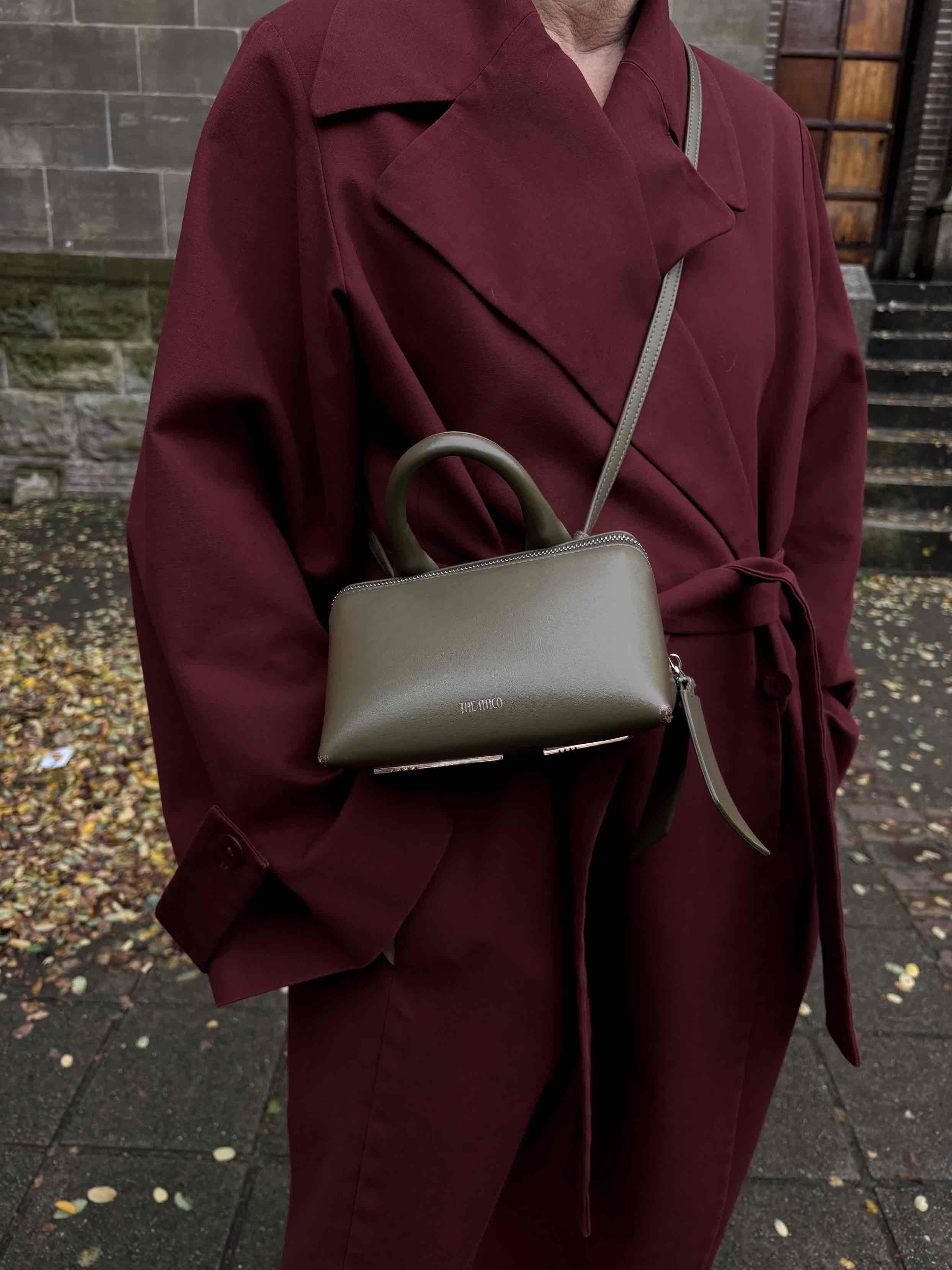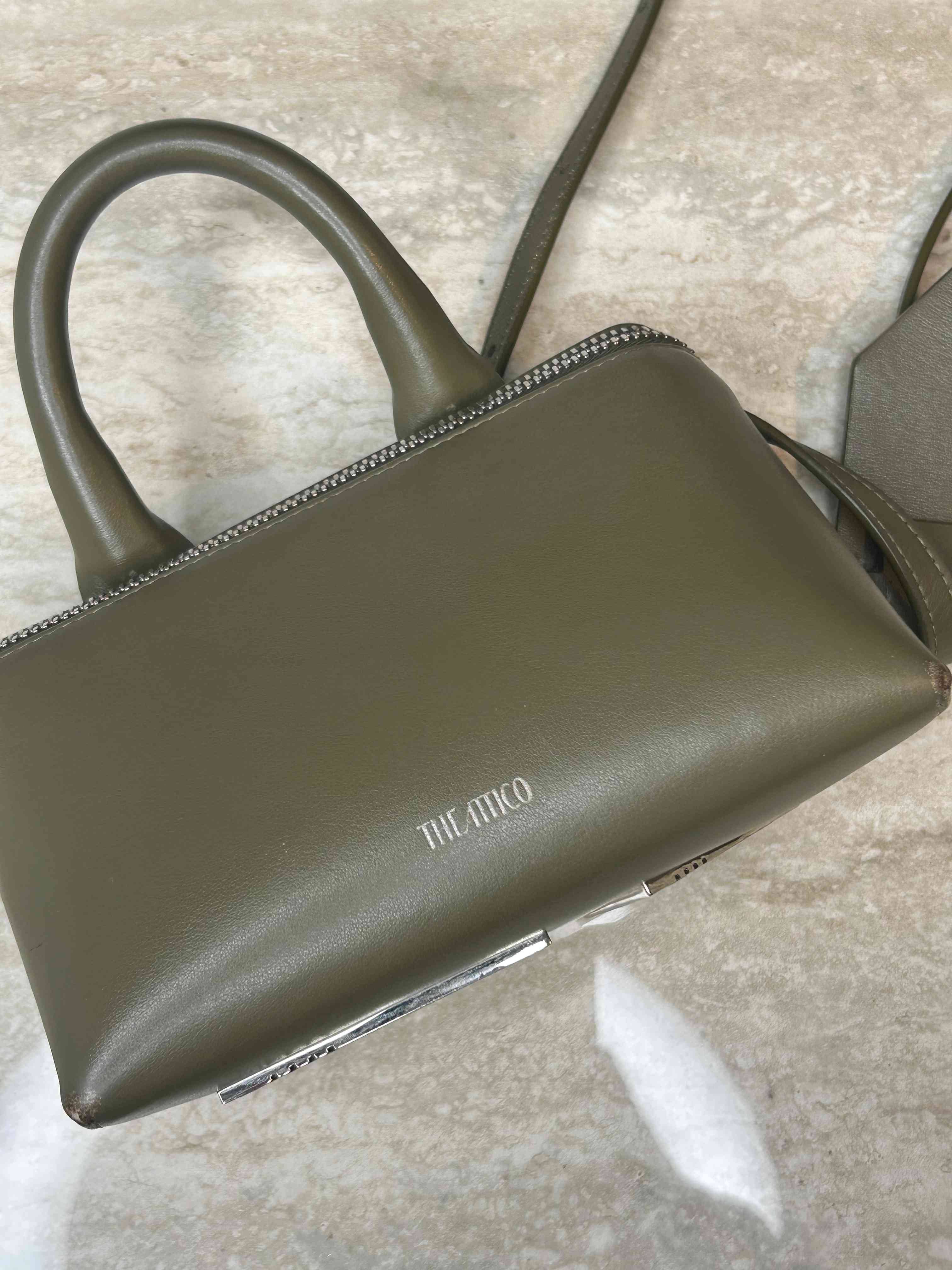 Olive leather "FRIDAY" bag. Leather damages on the corners. Inside damages.