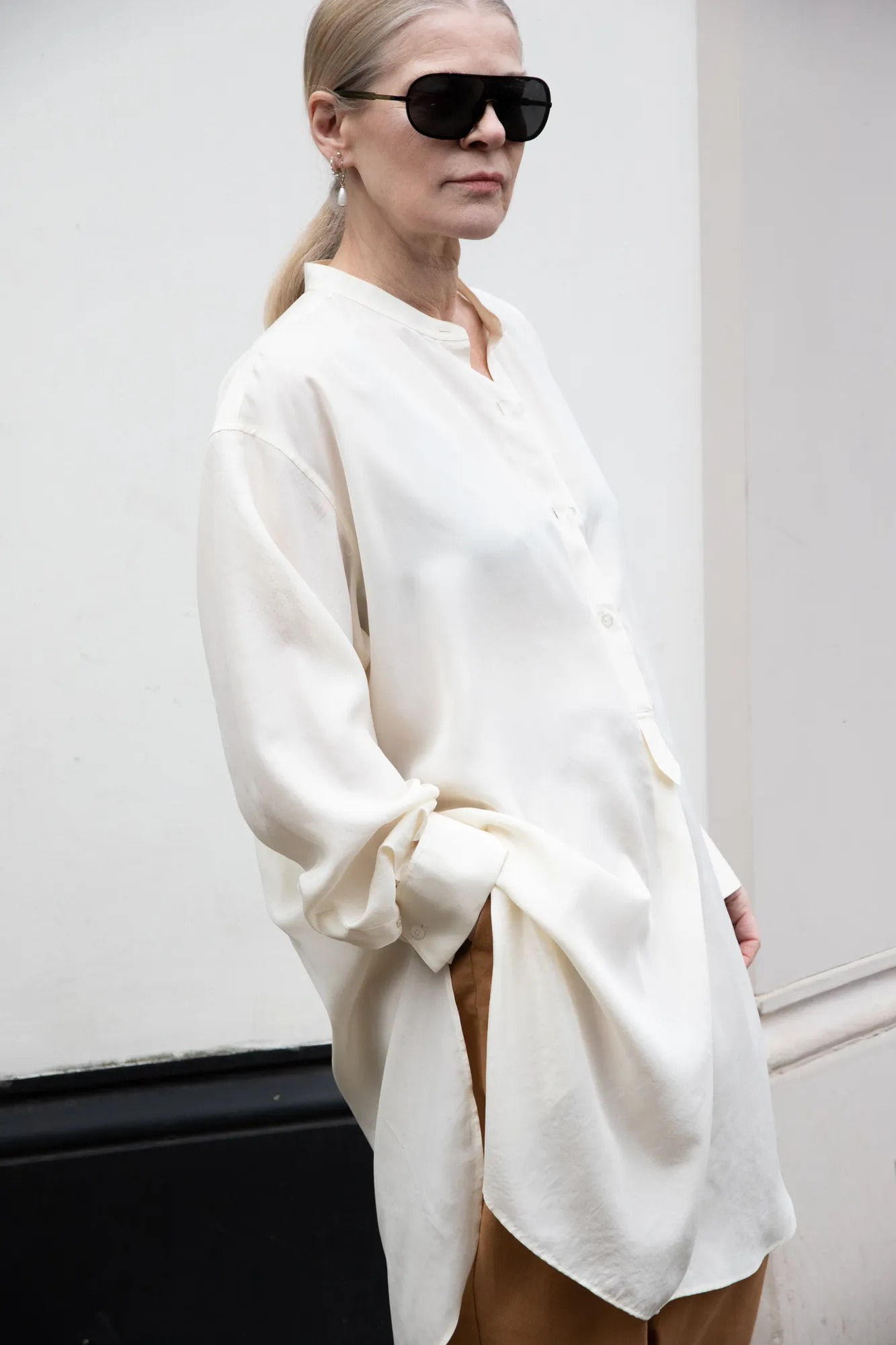 The Row ecru long blouse. 100% silk.