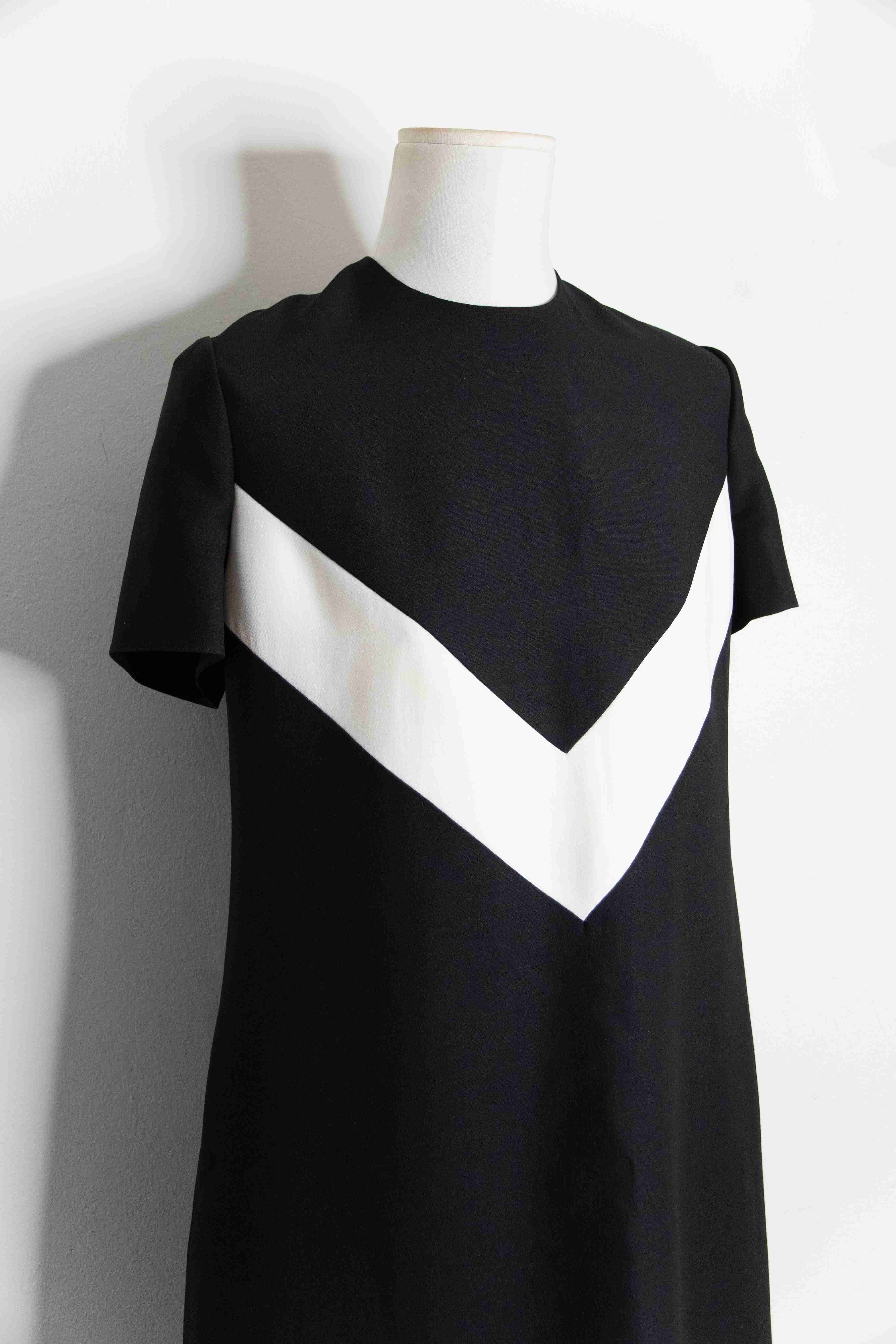 Black long Valentino dress with ecru V. 65% wool. 35% silk.