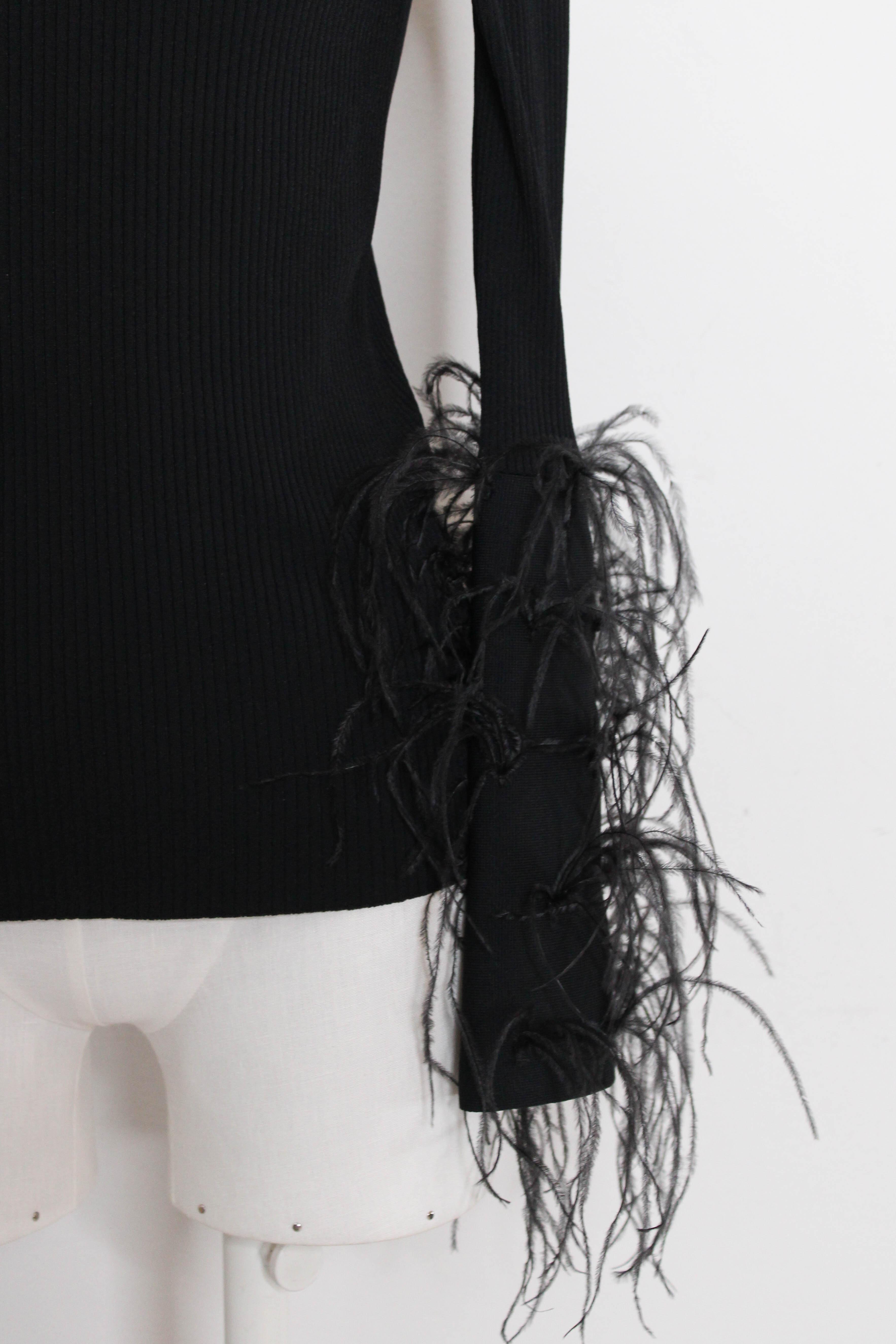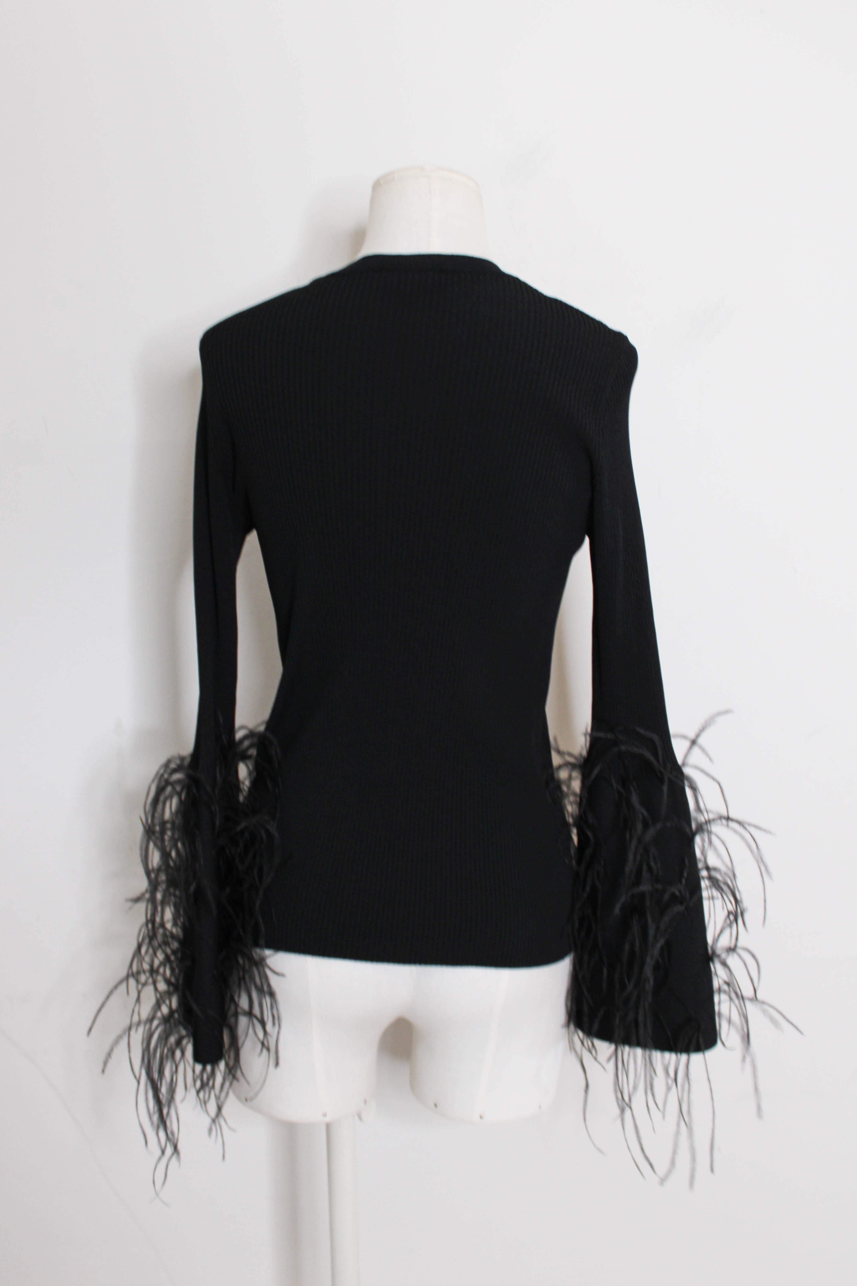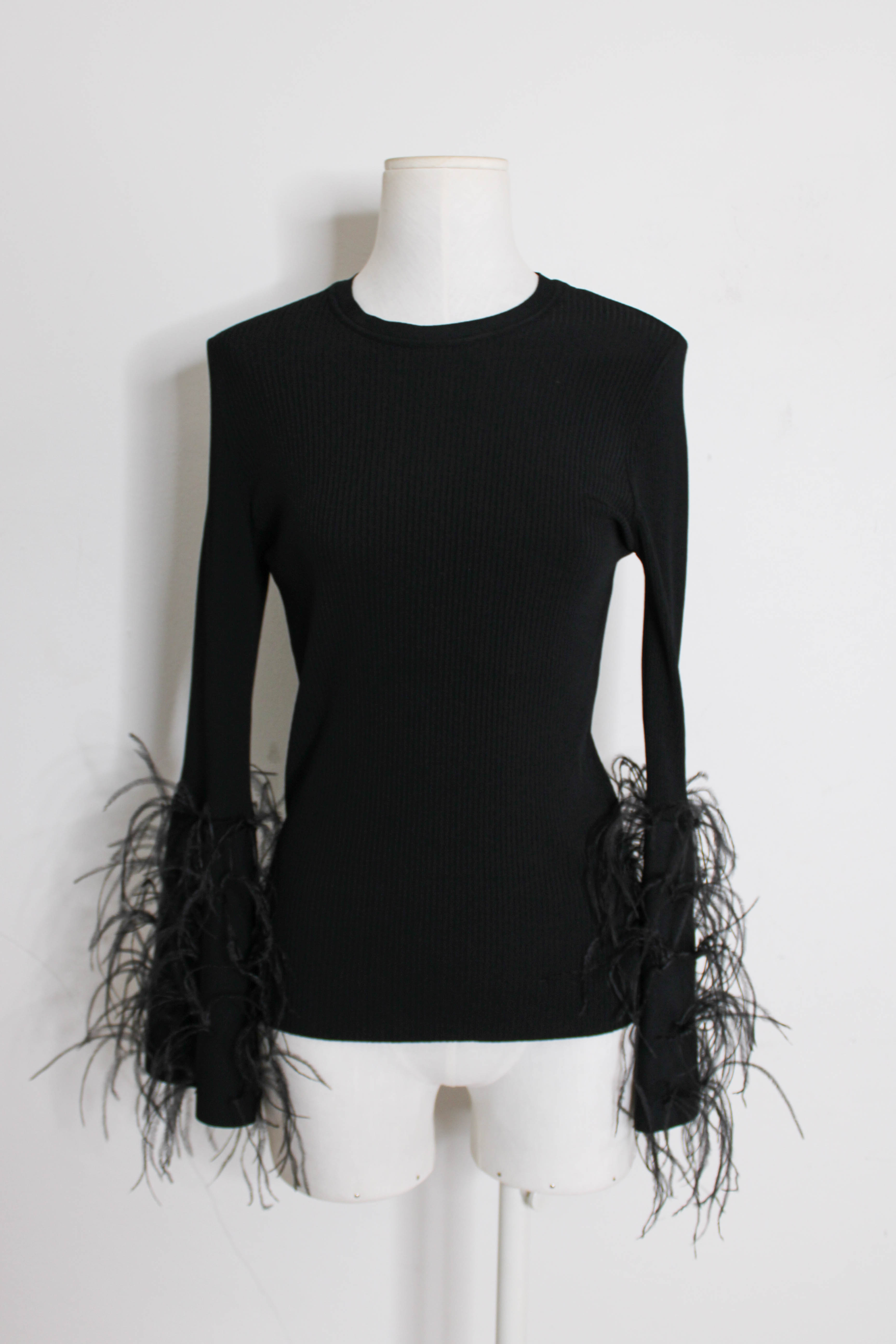 Black rib top. Long arms. Feathers on the cuffs. 100% viscose.